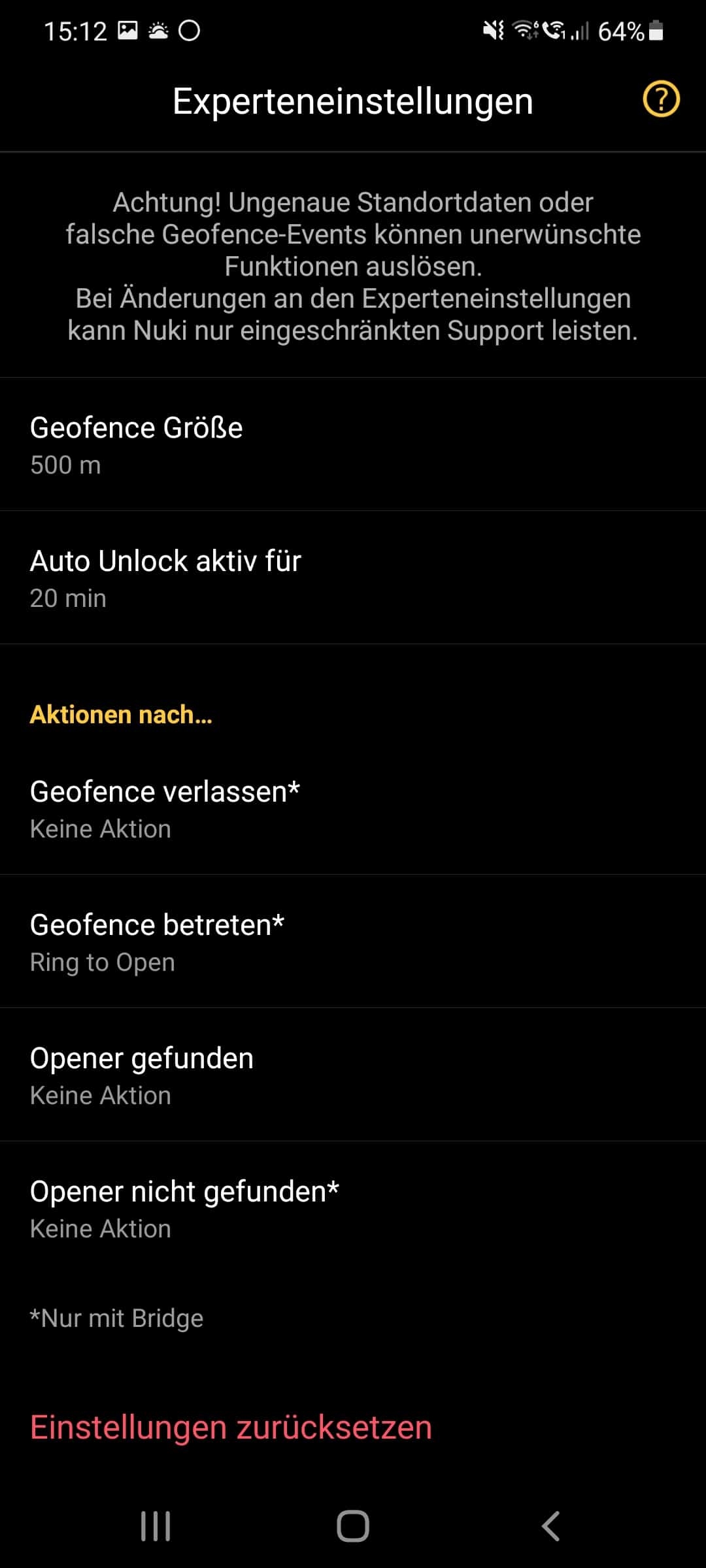 In unserem Test hat das leider nicht immer zuverlässig funktioniert. Getestet haben wir die Nuki-Produkte in Zusammenspiel mit einem Samsung Galaxy S20 Plus. Besonders Android-Smartphones scheinen ein Problem mit den Energiespareinstellungen zu haben, die selbst deaktiviert zu restriktiv für Nuki sind. Dadurch wird der Geofence-Modus teilweise gar nicht oder sehr verspätet aktiviert. Auch die Erweiterung des Geofence-Radius von 100 Meter auf z. B. 500 Meter hat bei uns keine zufriedenstellende Besserung gebracht. Bei iPhones soll das wesentlich besser funktionieren. Solltet ihr ein Android-Smartphone haben, solltet ihr also durchaus im Widerrufszeitraum mal testen, ob das mit eurem Smartphone richtig funktioniert.