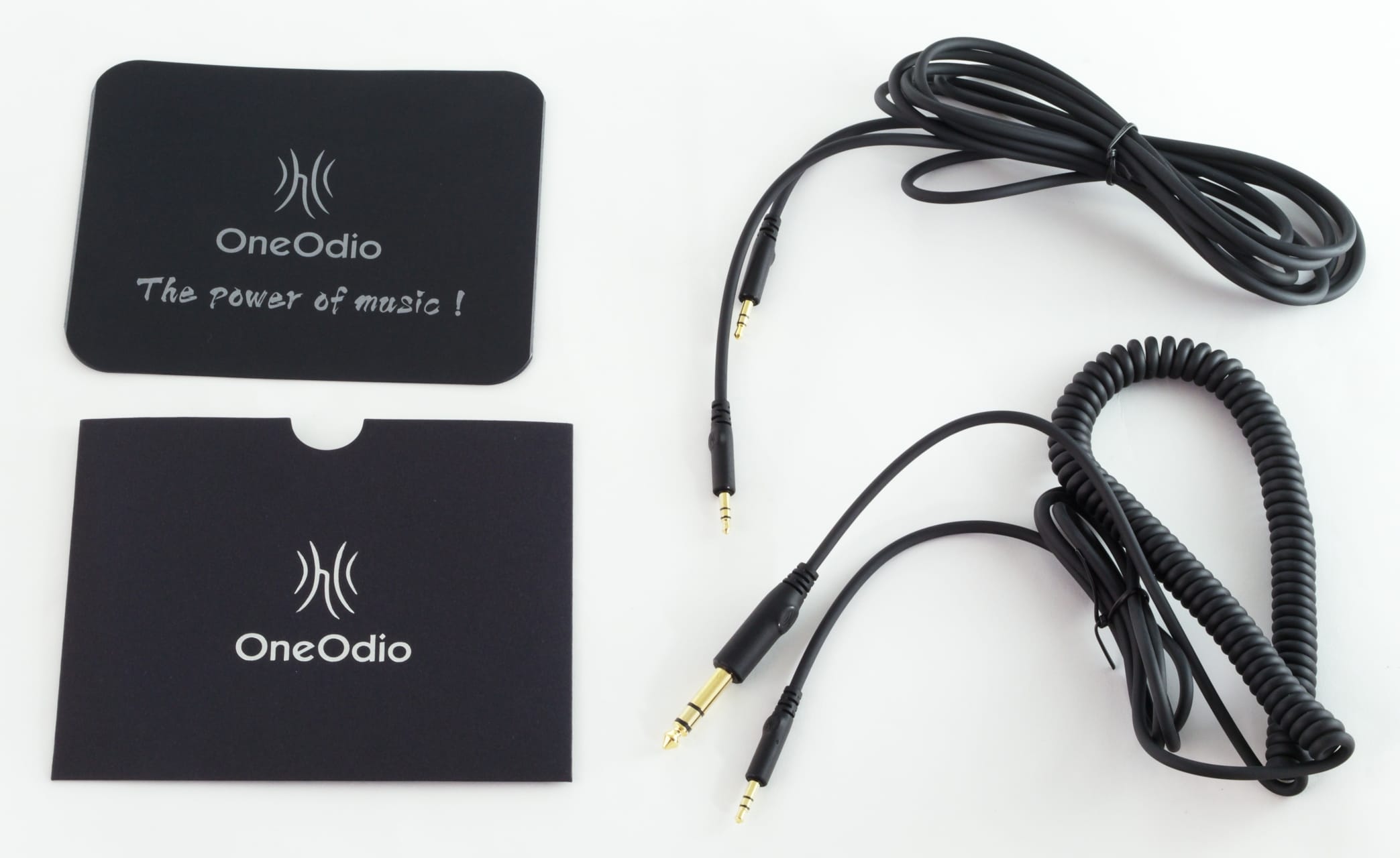 Die OneOdio Monitor 80 werden in einer silbernen Packverpackung mit einem farbig bedrucktem Schuber geliefert. Darin befindet sich ein Hardcase, das wiederum die Kopfhörer und das übrige Zubehör beinhaltet. Neben einer kurzen Produktübersicht gibt es von OneOdio dabei noch ein drei Meter langes Anschlusskabel mit 3,5-mm-Klinken-Anschlüssen an beiden Seiten.
