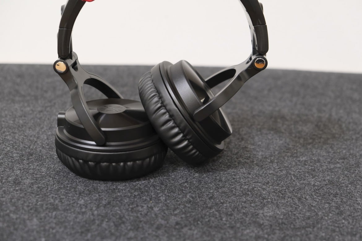 Gut gefallen uns hingegen die Gelenke des Pro M, dank denen sich die Ohrmuscheln nicht nur zu 90 Grad drehen lassen, sondern in der Horizontale auch um 180 Grad anklappbar sind. So lassen sich die Kopfhörer bequem um den Hals tragen und gleichzeitig äußerst platzsparend in Rucksack oder Tasche verstauen.