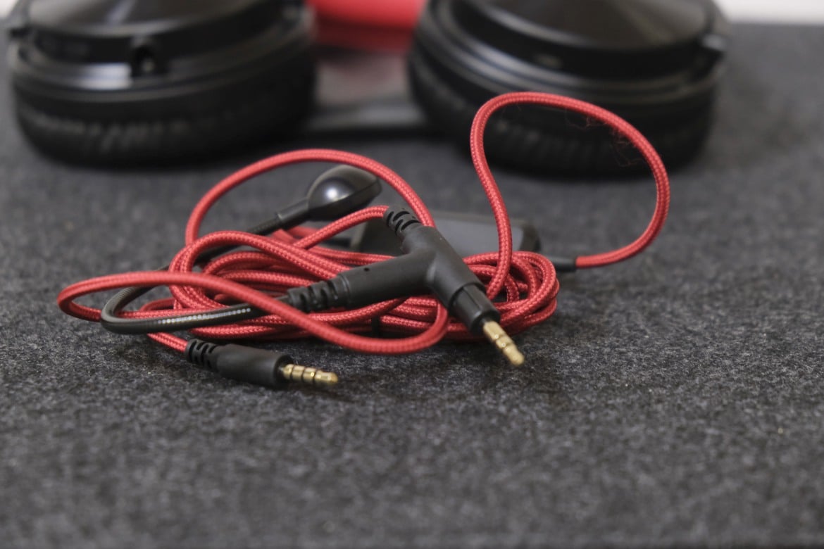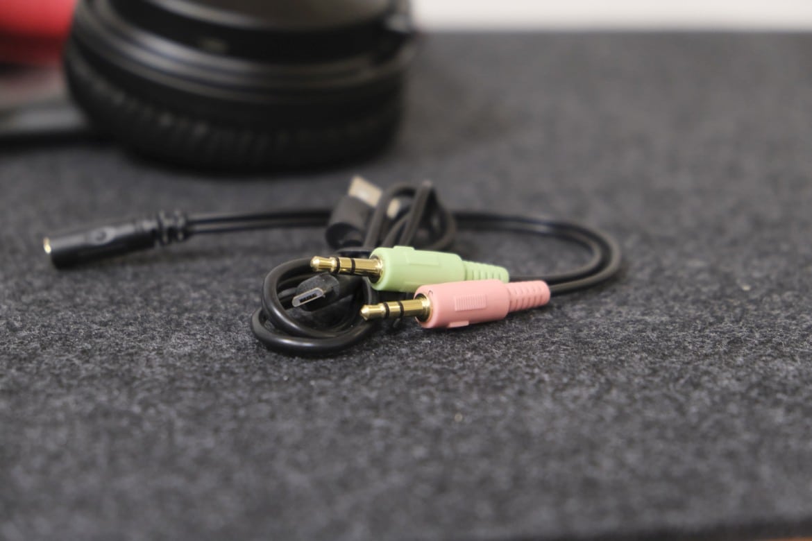 Im Falle des Pro M sind dies ein Micro-USB-auf-USB-A-Kabel zum Laden der Kopfhörer, ein kurzes 3,5-mm-Doppelklinkenkabel samt Y-Weiche und ein 2 Meter langes Klinkenkabel samt integrierter Fernbedienung und Boom-Mikrofon, um den Kopfhörer an PC und Notebook als waschechtes Headset nutzen zu können.