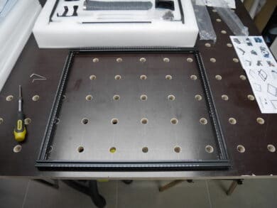Ortur hat uns zusätzlich zum Laser Master 2 Pro auch noch das optionale Gehäuse zum Testen bereitgestellt. Weil das Gehäuse im offiziellen Onlineshop noch nicht erhältlich ist und keine Informationen von Ortur vorliegen, können wir den Preis bisher nur schätzen. Realistisch sind unserer Ansicht nach 75 Euro bis 100 Euro. Leider gibt es auch im Internet noch keine Anleitung für den Aufbau des „Schneewittchensargs“. Wir mussten daher einige Zeit herumprobieren, bis das Gehäuse korrekt zusammengebaut war.