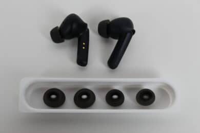 Zum Thema Touchfunktionen – durch ein Antippen oder Gedrückthalten der Kopfhörer lassen sich Einstellungen ändern, Lautstärke anpassen, Lieder überspringen,… es gibt eine Menge Möglichkeiten. Dies läuft in der Praxis super – der einzige Kritikpunkt: Beim Wechseln des ANC-Modus wäre eine Mitteilung schön – sei es ein Piepen oder eine kurze Ansage. Außerdem hatten wir gelegentlich Aussetzer der Funktionen. Obwohl z. B. ein Doppeltippen die Lautstärke erhöhen sollte, wurde jedoch die Wiedergabe pausiert.