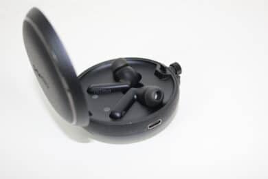 Da dies jedoch zusätzliche Arbeit für die Kopfhörer bedeutet, schlägt es sich natürlich auch in der Akkulaufzeit nieder. Die bereits relativ niedrige Akkulaufzeit von etwa 3,5 Stunden wird so um etwa 15 Minuten verringert. In unserem Test konnte das Ladecase die Kopfhörer etwa 2,5 mal voll laden. Der Ladestand des Cases wird zwar über den LED-Ring angezeigt, auf eine direkte Anzeige für die Kopfhörer wird jedoch verzichtet.