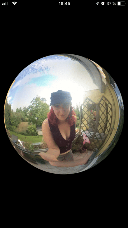 Die PanoClip-App bietet selbstverständlich die Funktion, die Fotos mit anderen auf Social Media Kanälen zu teilen. Dann sind sie jedoch wie ein Snapshot und die Wirkung der 360°-Ansicht geht verloren. Es gibt jedoch die Möglichkeit, dies zu umgehen. Die App ist dabei sehr unübersichtlich und die Funktion unter Sharen > Album als… versteckt. Bereits der Menüpunkt, der nicht komplett lesbar ist, schreckt erst einmal ab, doch wer es findet, den erwartet die Möglichkeit, das Foto als 360°-Foto zu speichern, was ähnlich einem Panorama wirkt.