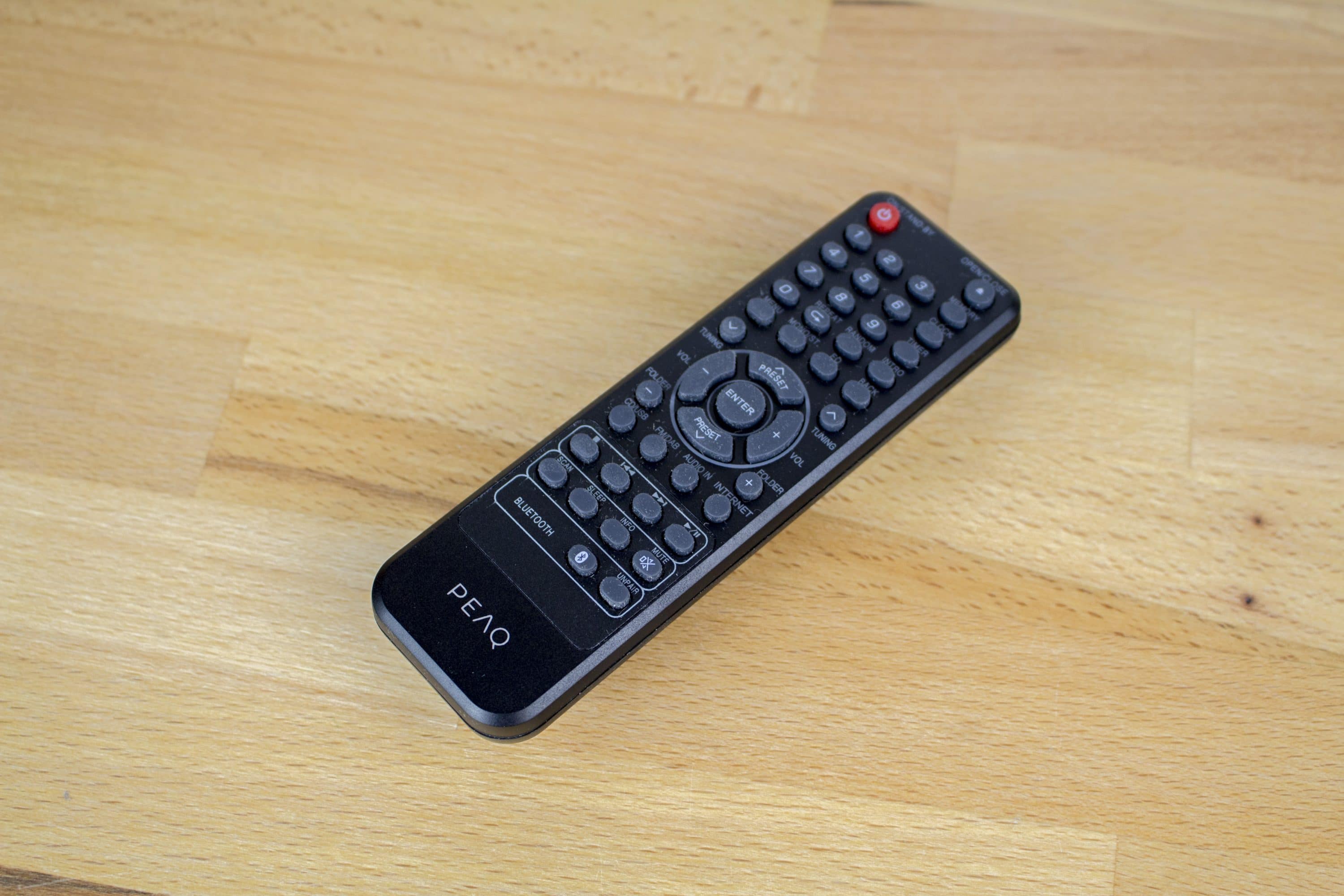 Die Bedienung muss über die Fernbedienung erfolgen, da die Buttons am Gerät selber nicht alle Funktionen bieten. Die Fernbedienung muss hierzu auf den Infratrotsensor an der Vorderseite des PEAQ PDR 350BT-B gerichtet werden, ansonsten ist die Bedienung nicht möglich.