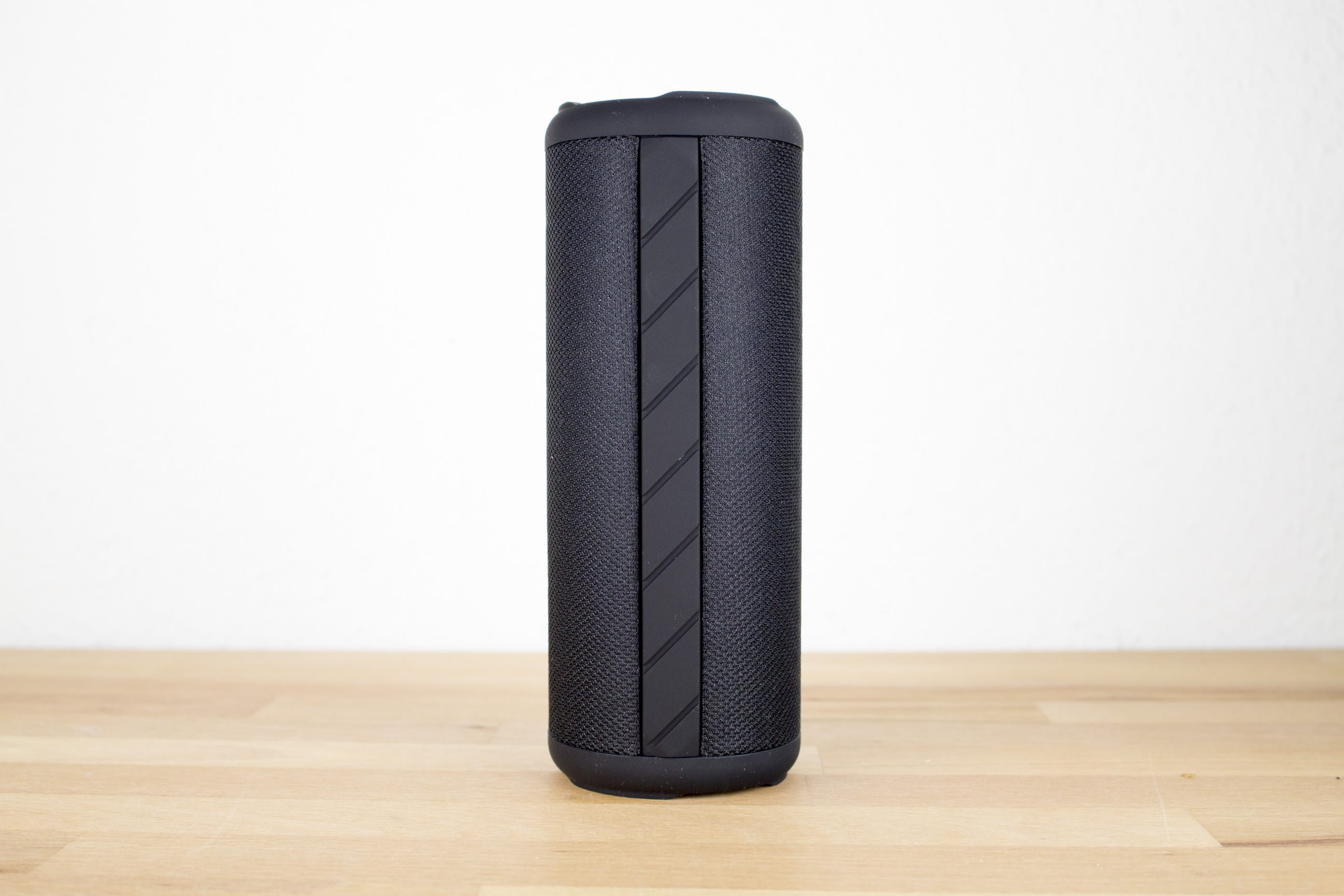 In seiner Röhrenform ähnelt der Lautsprecher vielen anderen Lautsprechern. Mit Maßen von 8 x 8 x 20,4 cm und einem Gewicht von 560 Gramm ist er zwar nicht mehr ganz klein, aber immer noch handlich genug, um mit einer Hand getragen zu werden. Eine Besonderheit des Lautsprechers ist seine IPX7-Zertifizierung. Er kann also bis zu 30 Minuten in 1 Meter tiefe Gewässer eintauchen, ohne Schaden zu nehmen. Das spricht auch für seine Verarbeitungsqualität, die einwandfrei ist.