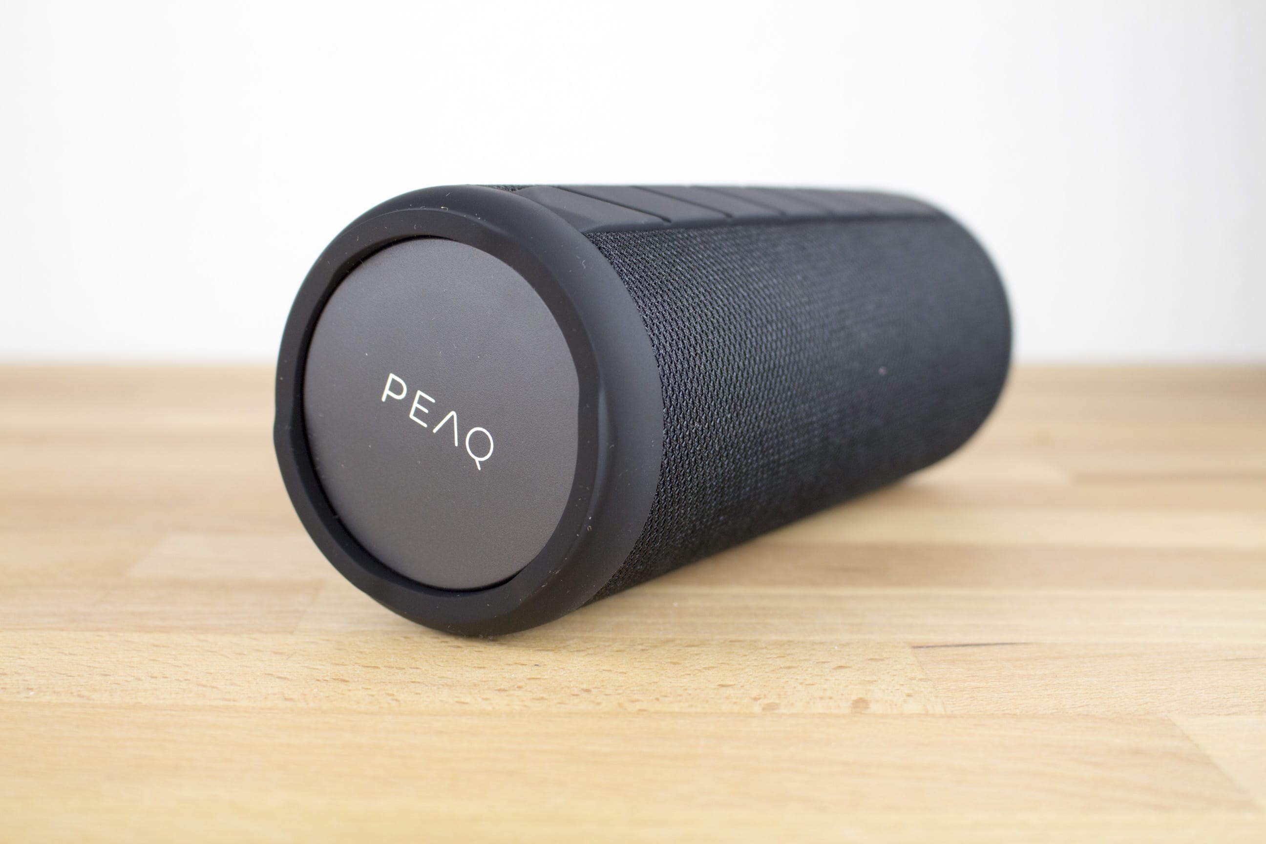 Der Lautsprecher ist sehr schlicht gehalten. Mit seinem schwarzen Gehäuse ist er äußerst unscheinbar. Oben und unten ist er gummiert, um rutschfest aufgestellt werden zu können. Dazwischen ist der PPA40BT-B mit schwarzem Stoff überzogen, der sich angenehm anfühlt und den Bluetooth-Lautsprecher edler wirken lässt. Hinter dem Stoff versteckt sich eine Kunststoffverkleidung.