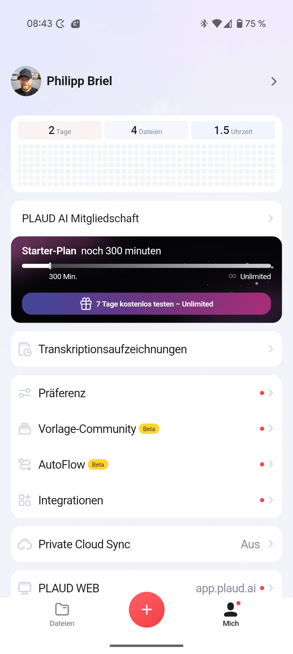 Der PLAUD NotePin ist mehr als nur ein winziger Sprachrekorder. Die KI-Funktionen heben das Diktirgerät auf ein ganz neues Level und arbeiten dabei erfreulicherweise bereits im kostenlosen Plan so unglaublich gut und präzise, dass die Möglichkeiten nahezu endlos sind. Toll auch, dass unbegrenzter Cloudspeicher bereits im Preis enthalten ist.