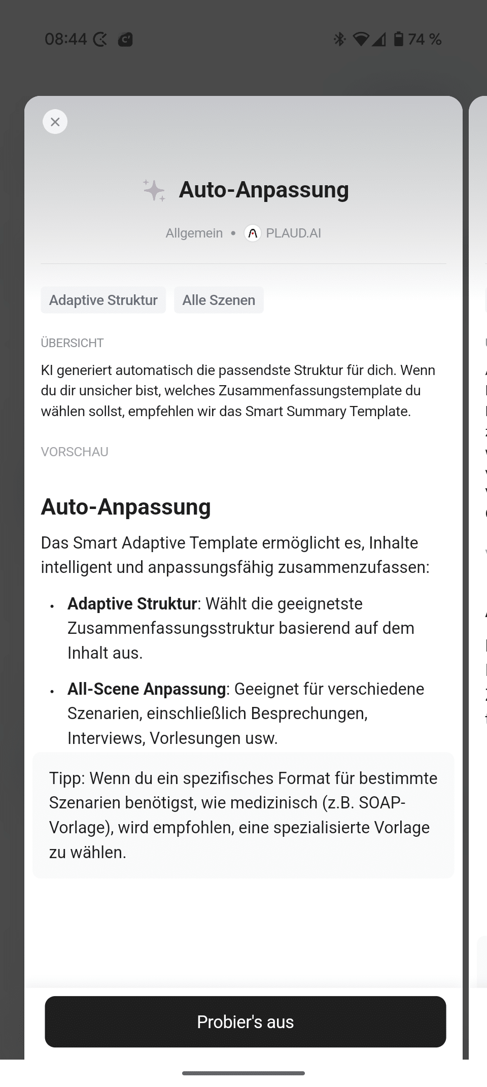 Und das ist nur ein Teil dessen, was mit dem PLAUD NotePin möglich ist. Du kannst auch eigene Vorlagen erstellen und diese individuell anpassen, um beispielsweise Bewertungen von Medien zu kategorisieren und vieles vieles mehr.