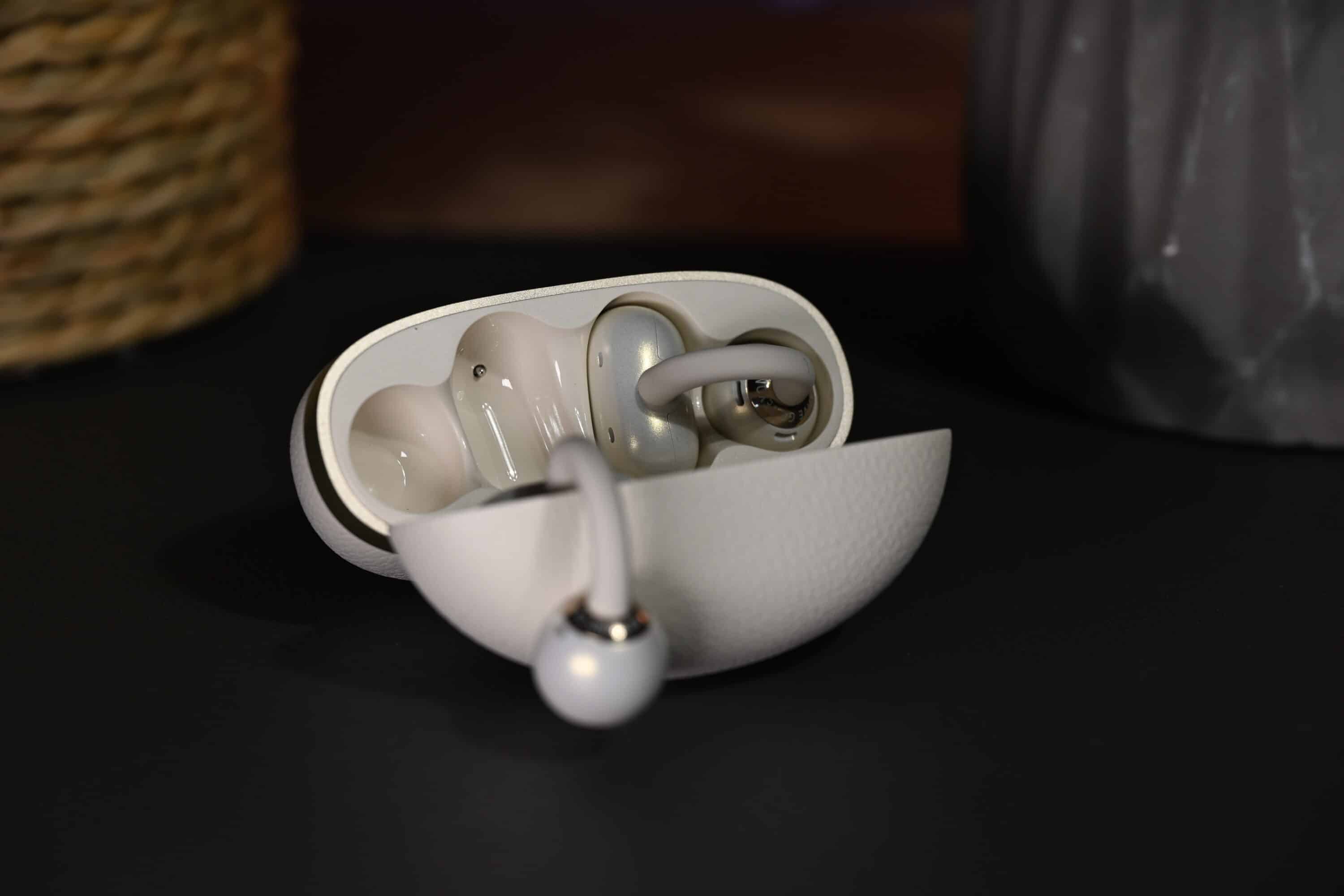 Das Design der Crossky C50 orientiert sich am modernen „Open-Ear“-Prinzip, bei dem die Ohrhörer nicht in den Gehörgang gesteckt, sondern direkt auf die Ohrmuschel geklippt werden. Das kennen wir bereits von Modellen wie den Edifier R1 (unser Test) oder HUAWEI FreeClip (unser Test).