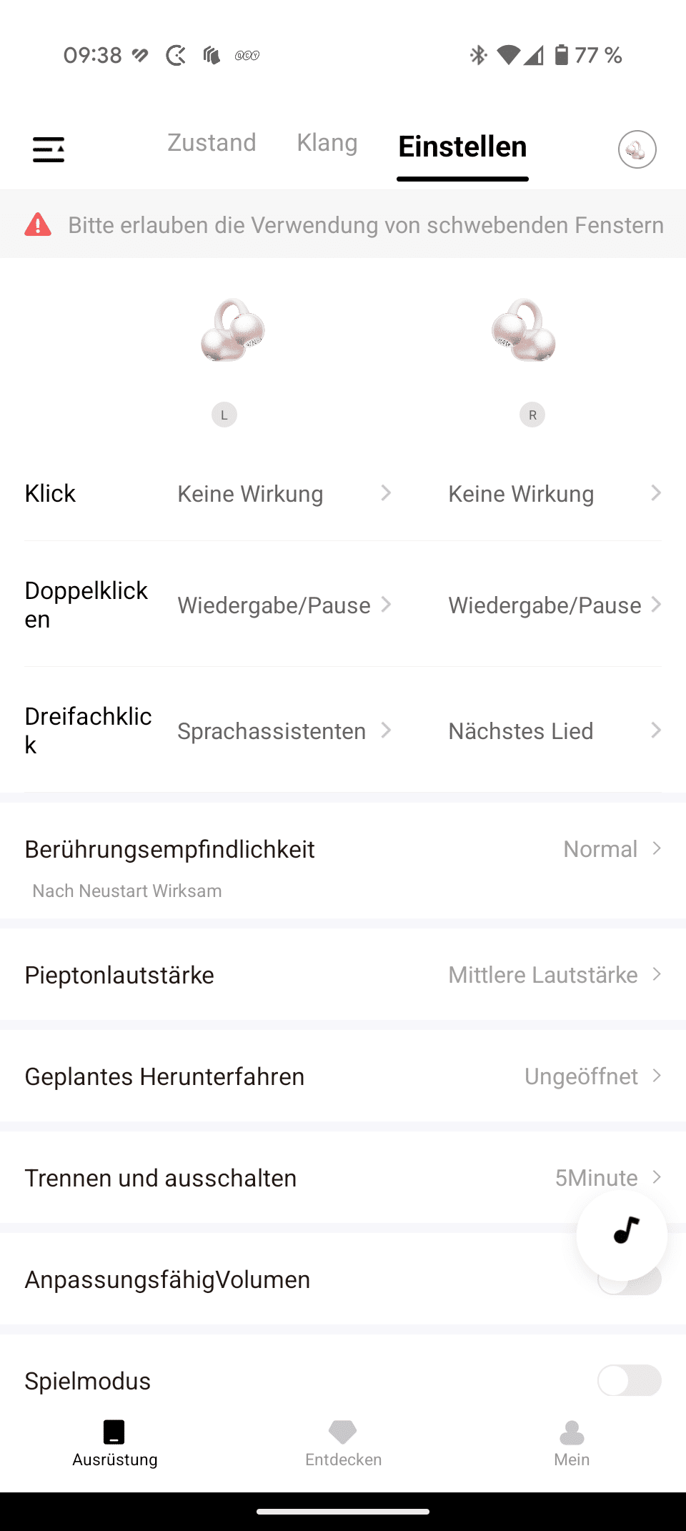 Die automatische Seitenzuordnung funktioniert im Test fehlerfrei. Eine Companion-App zur weiteren Individualisierung wird zur Verfügung gestellt und zwar in Form der QCY App. Diese wartet mit dem üblichen Funktionsumfang auf, wie: