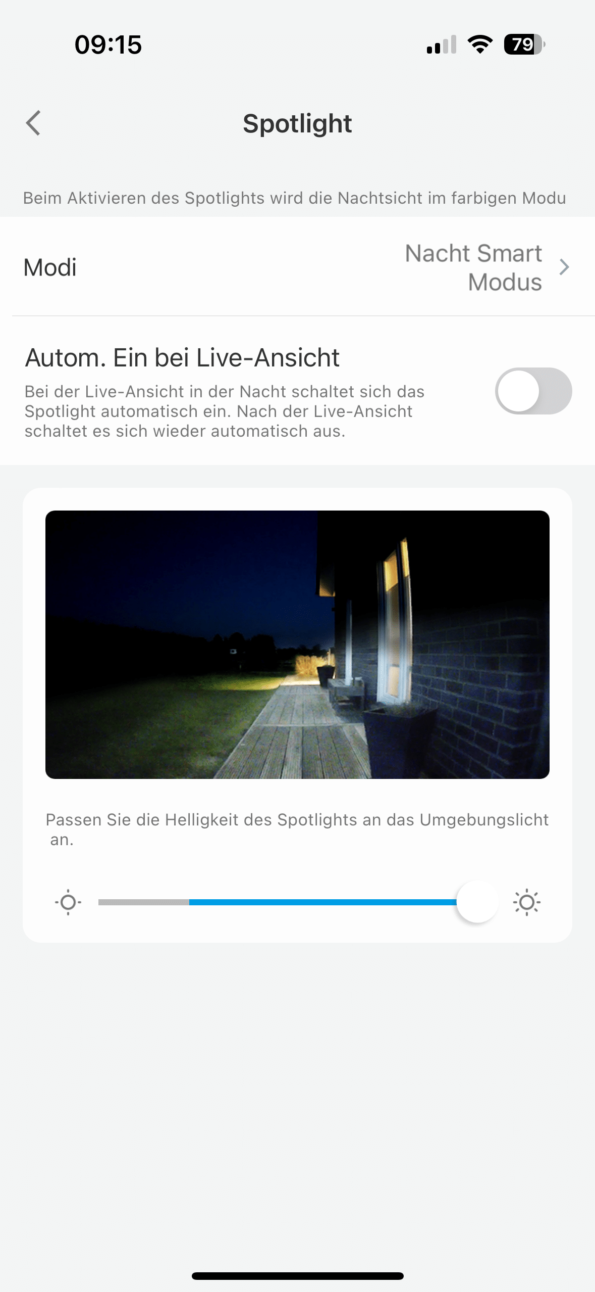 Die übertrifft die Herstellerangabe hinsichtlich der Reichweite von 10 Metern sogar noch deutlich. Optional lässt sich zudem ein Flutlicht hinzuschalten, um die Umgebung (bei Bewegungen oder dauerhaft) zu beleuchten.