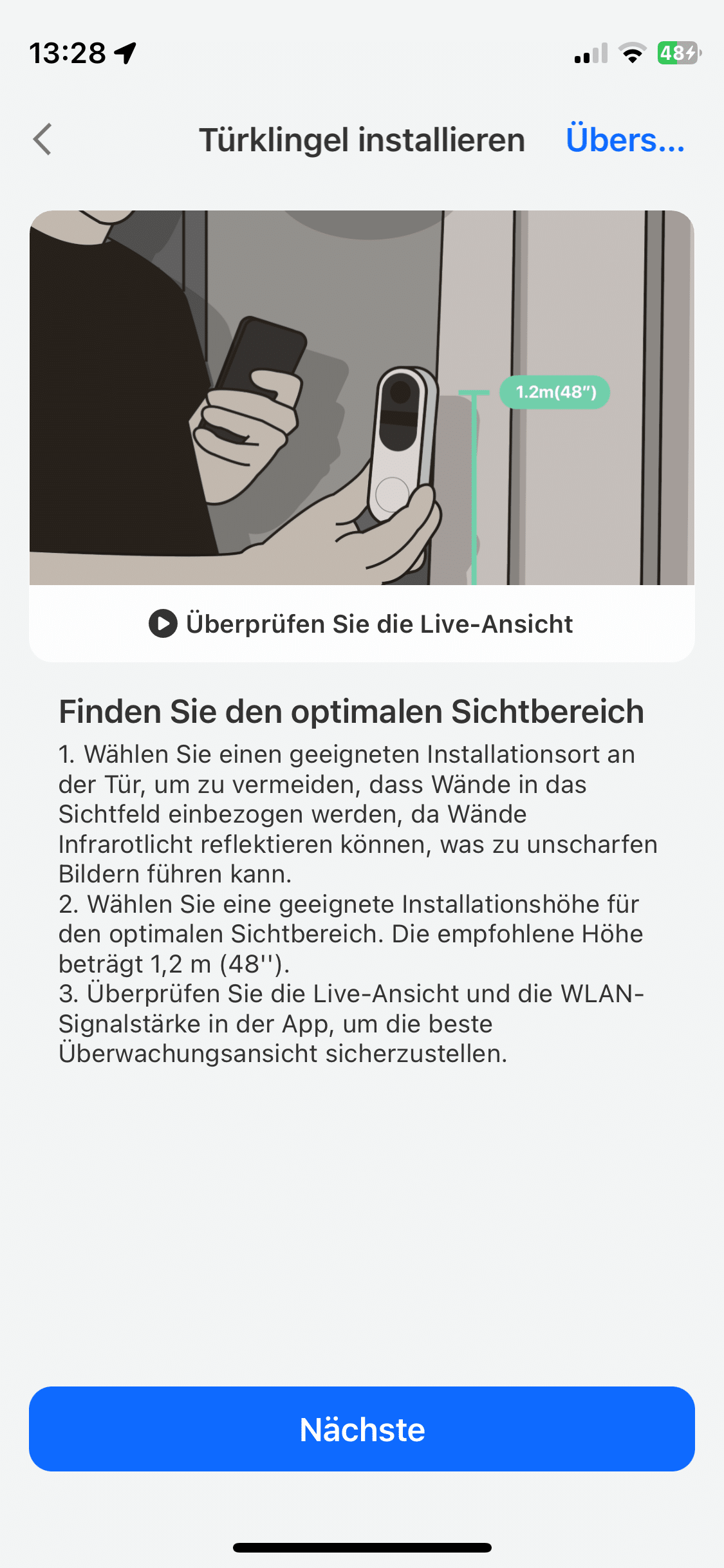 Bei Nacht liefert die Reolink hingegen eine exzellente IR-Nachtsicht. Eine farbige Nachtsicht gibt es hingegen nicht. Hier hätte sich vielleicht eine LED-Einheit wie bei der TP-Link Tapo D230S1 (Test, € 84,90 *) angeboten. Die größte Verbesserung zur Reolink Video Doorbell ist aber der tolle Blickwinkel. Wenn ihr die Videotürklingel in der empfohlenen Höhe von 1,2 m anbringt, könnt ihr bei normalgroßen Personen sowohl Kopf als auch Füße erkennen.