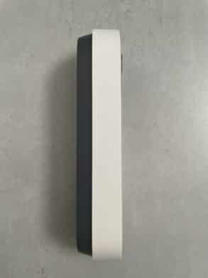 Doch die verbaute Batterie macht sich nicht nur bei der Bauhöhe bemerkbar. Auch ist die Doorbell Battery deutlich schwerer als die Reolink-Klingel ohne Akku. Bei der Bauform selbst bleibt sich Reolink hingegen treu. So setzt auch das neueste Modell oben und unten auf hübsche abgerundete Ecken. Die Aufteilung entspricht ebenfalls der des Vorgängers. So sitzt in der oberen Hälfte die Kameraeinheit und in der unteren Hälfte der beleuchtete Klingelknopf.