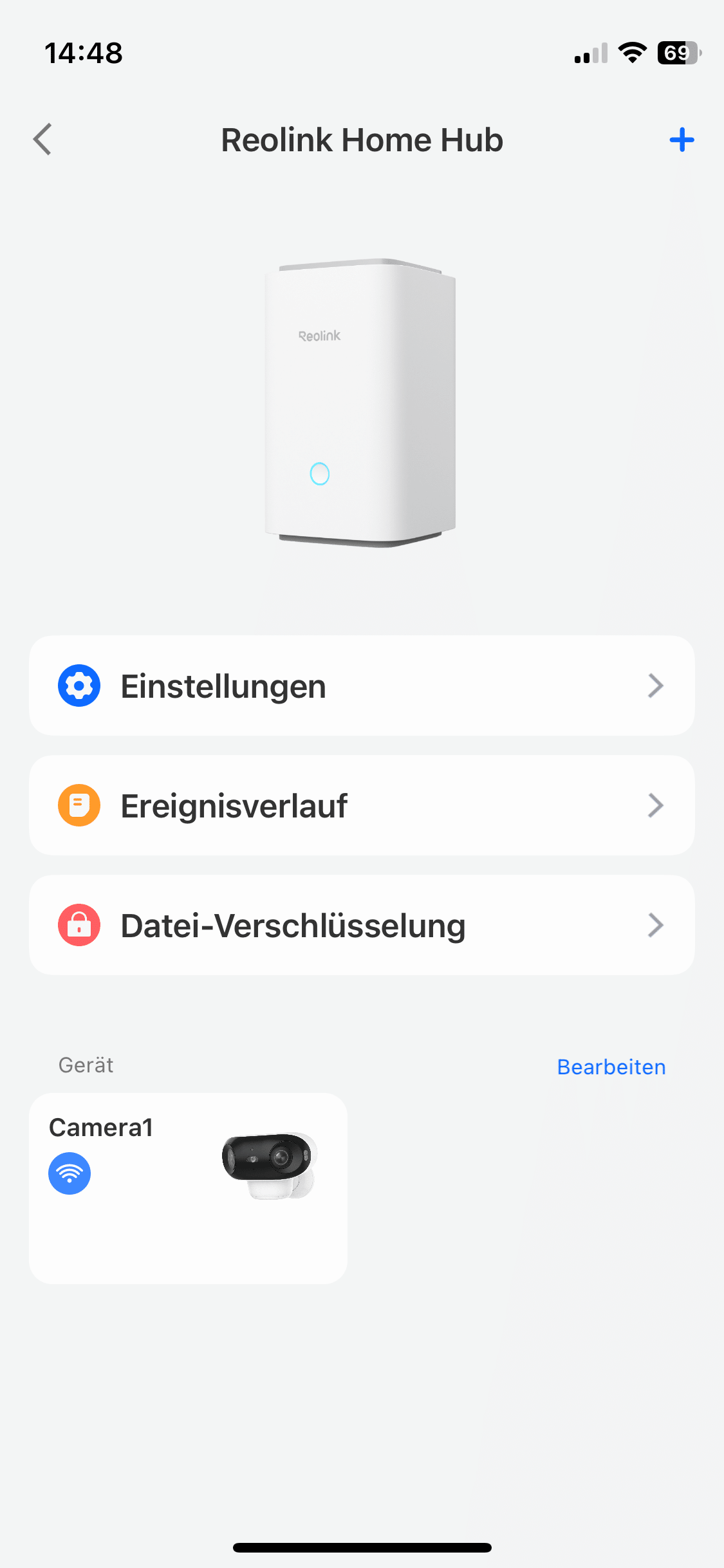 Hier könnt ihr den Home Hub als neues Gerät hinzufügen. Nun noch der Schritt-für-Schritt-Anleitung der App folgen und der Hub befindet sich in eurer Geräteliste. Ist der Reolink Home Hub Bestandteil eurer Geräteliste, könnt ihr diesem Kameras zuordnen. Kompatible Kameras, die sich bereits in eurem System befinden, könnt ihr ganz einfach in die Gerätegruppe des Hubs einfügen. Alternativ könnt ihr auch den QR-Code an der Kamera scannen und auf diesem Wege die Kamera als neues Gerät hinzufügen.