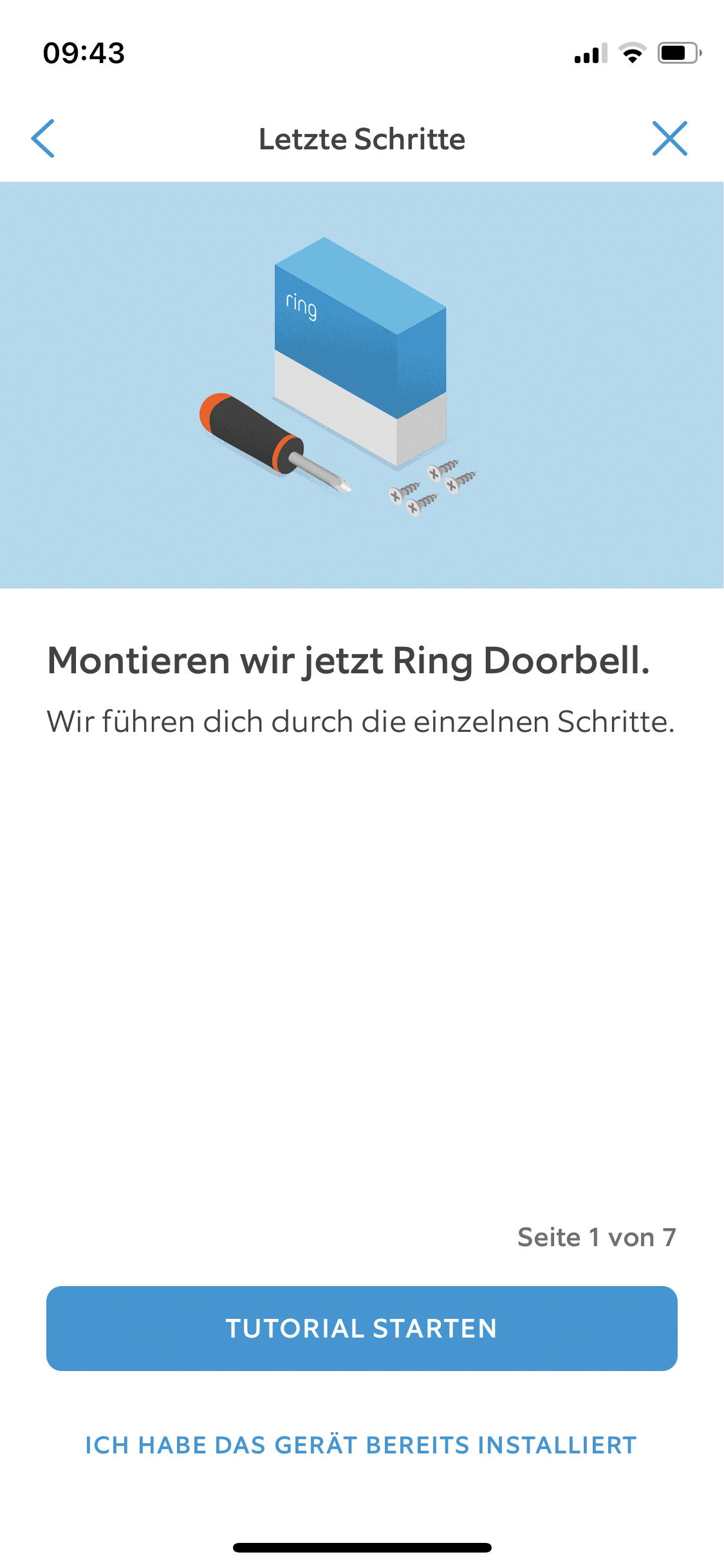 Hast du die Türklingel installiert und mithilfe der passenden Sicherheitsschraube vor dem Diebstahl abgesichert, wird es ernst. Du darfst den Schraubenzieher in knalligem Orange weglegen und durch dein Smartphone ersetzen. Hier lädst du nun die Ring-App herunter, wenn du das nicht ohnehin schon erledigt hast. Es mag dich vielleicht ein wenig verunsichern, welche Daten die App alle von dir wissen möchte. Neben der E-Mail musst du hier nämlich auch Handynummer sowie deine Adresse angeben. Das habe ich in dieser ausufernden Form bei anderen Herstellern noch nicht gesehen.