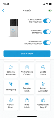 Für die Überwachung der Kameraaufnahmen und erweiterte Einstellungen steht die Ring App zur Verfügung. Diese punktet auch hier wieder mit ihrem übersichtlichen Design. So findet man hier stets auf Anhieb den passenden Menüpunkt. Einstellen lässt sich vieles. So kann man unter anderem die Empfindlichkeit der Bewegungserkennung anpassen. Praktisch ist das unter anderem für all diejenigen, die an stark befahrenen Straßen wohnen.