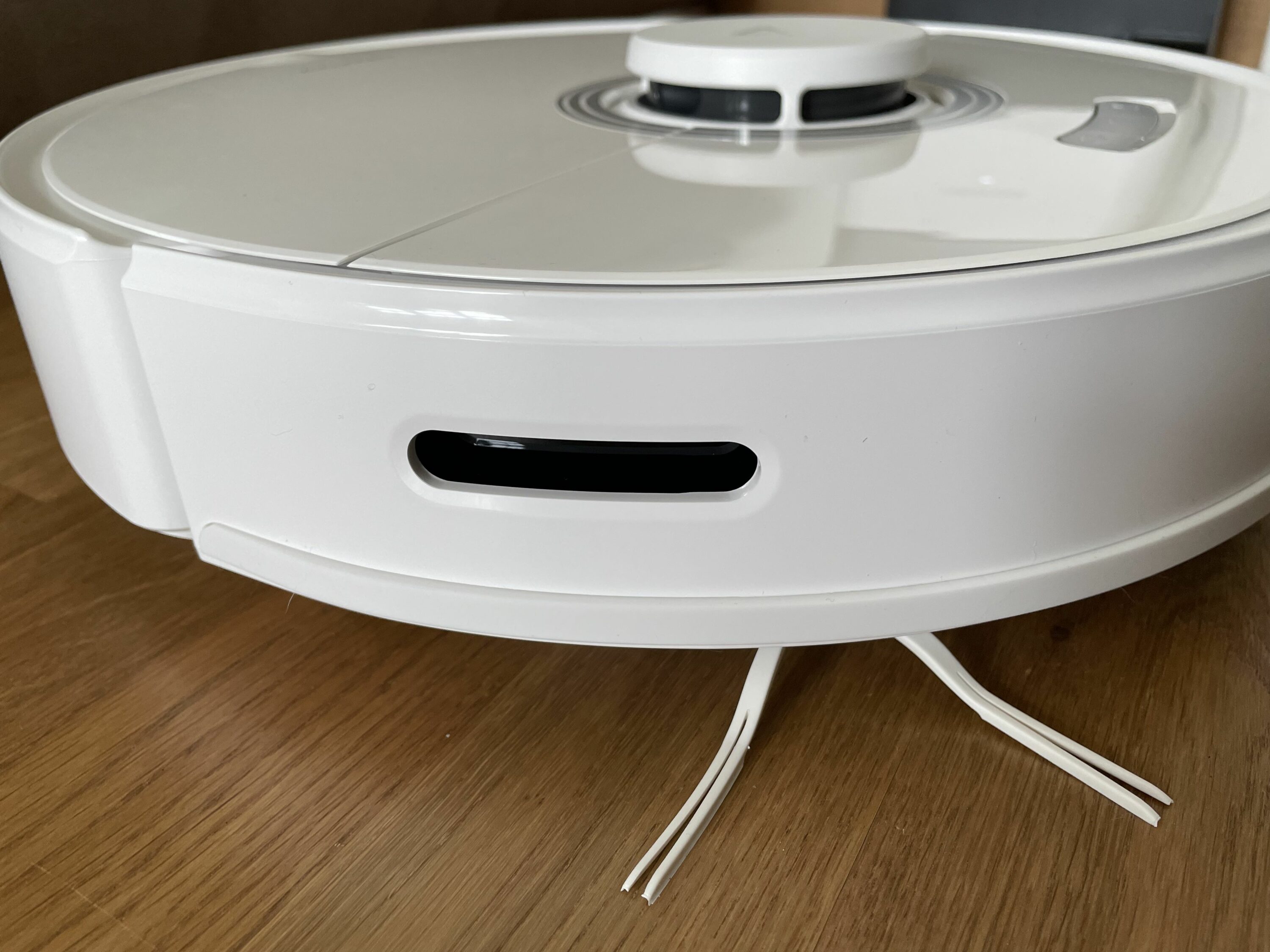Wirft man einen Blick von der Seite auf das Gerät, kann man zum ersten Mal deutlich erkennen, wo Roborock gespart hat. Während der S7 nämlich über eine optische Hinderniserkennung verfügt, setzt der Q7 Max+ auf die zuverlässige, mittlerweile aber etwas veraltete IR-Technik.
