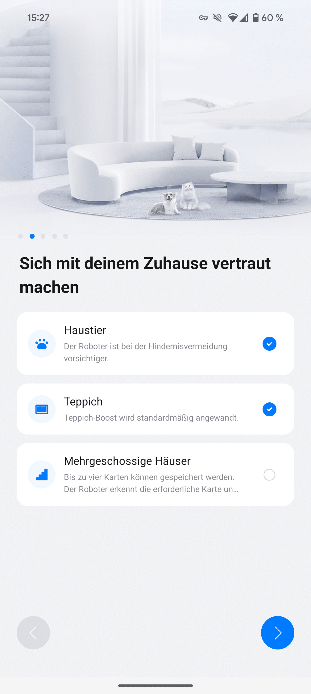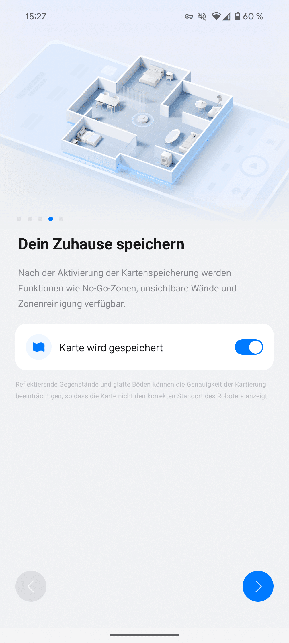 Die App führt einen durch einen praktischen Schnellstart, der alle wichtigen Einstellungen abfragt und den Roboter optimal konfiguriert.