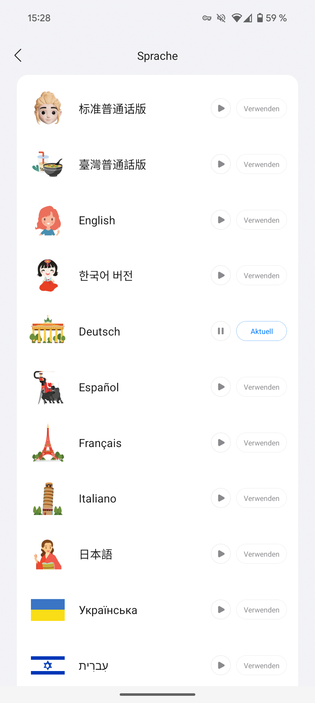 Die 6 verfügbaren Reinigungsmodi in der App: