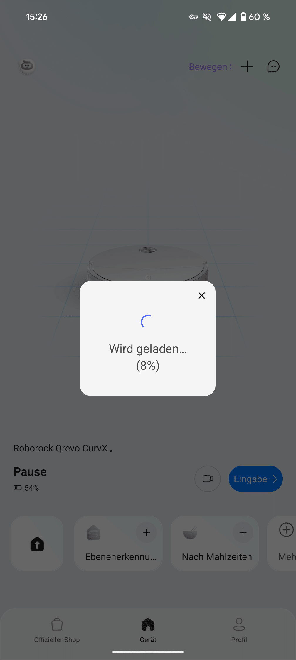Die App-Verbindung funktioniert problemlos. QR-Code auf der Bedienungsanleitung scannen, App runterladen, QR-Code am Roboter scannen, WLAN-Daten eingeben, kleines Update abwarten – nach etwa zehn Minuten ist der CurvX bereit für seinen ersten Einsatz.