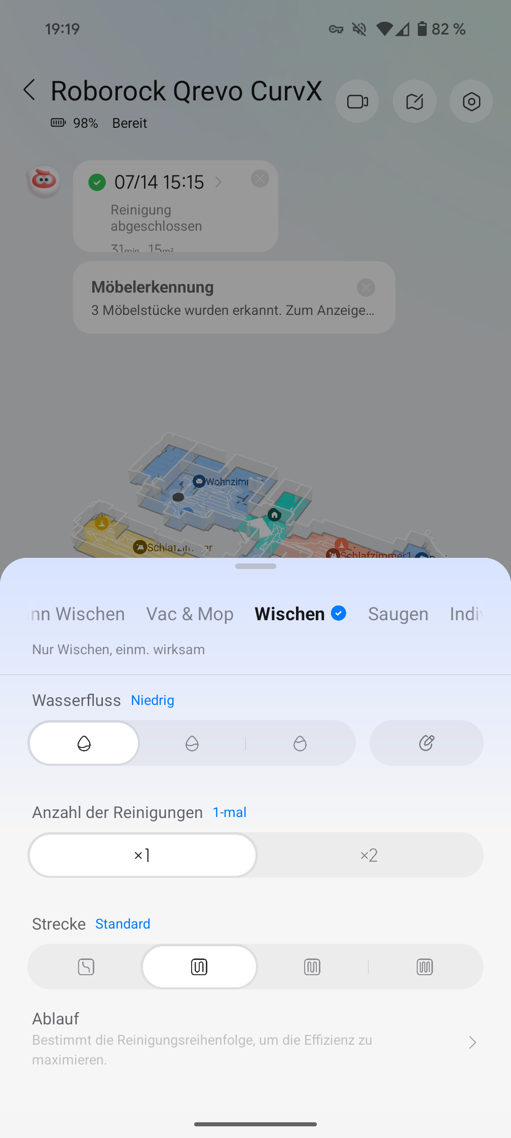 - Nur Wischen: Reine Wischfunktion für bereits gesaugte Böden