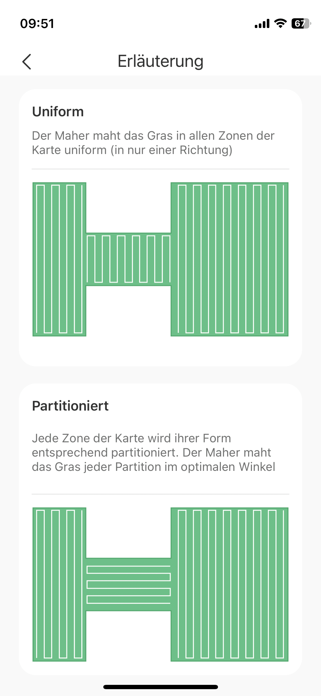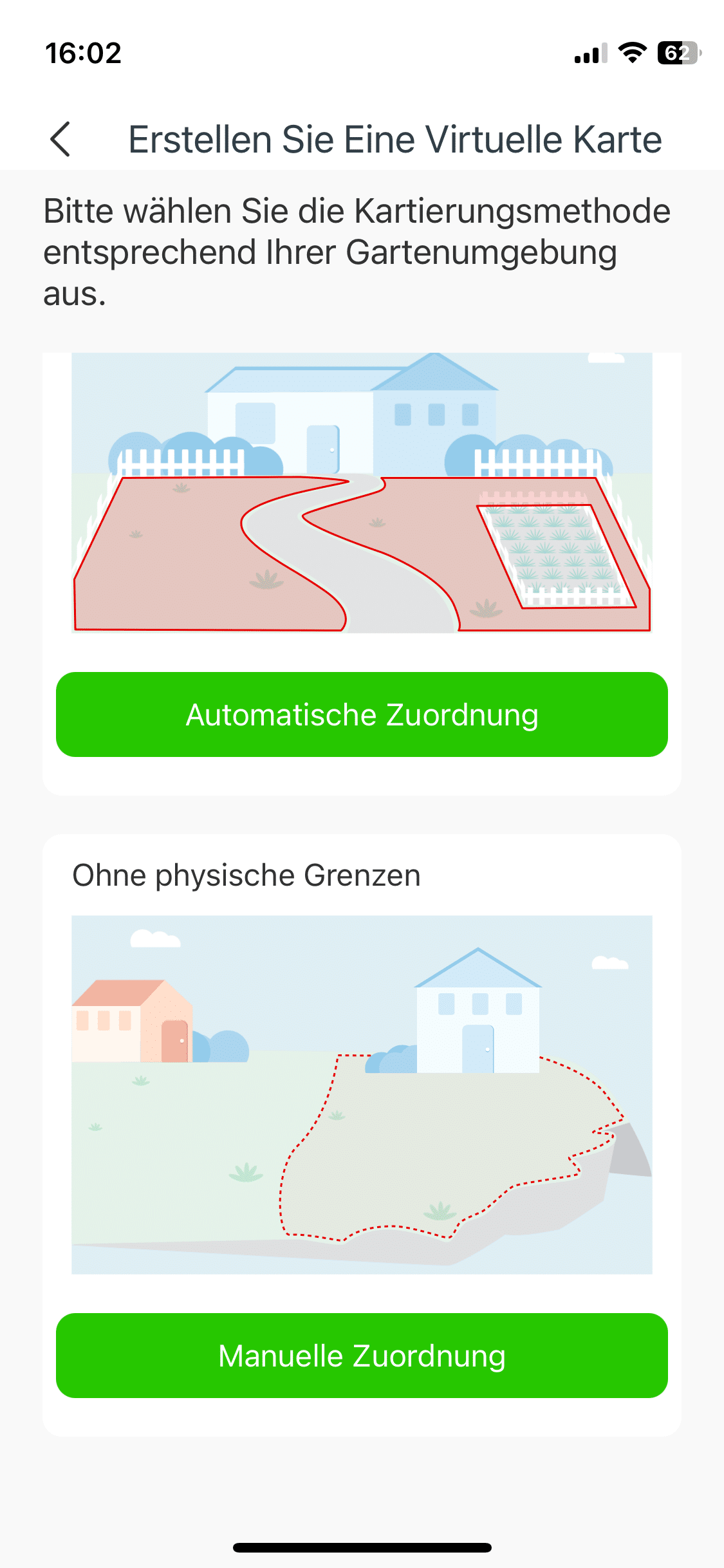 Unabhängig davon, für welche Methode du dich entscheidest, kannst du im Anschluss in der App auf eine Karte zugreifen. Dabei kannst du bis zu zehn unterschiedliche Arbeitszonen abspeichern. Im Test habe ich eine Fläche automatisch kartieren lassen und eine weitere manuell kartiert. Beides funktionierte recht gut, wobei die manuelle Methode vor allem bei komplexeren Gartenformen zu bevorzugen ist.