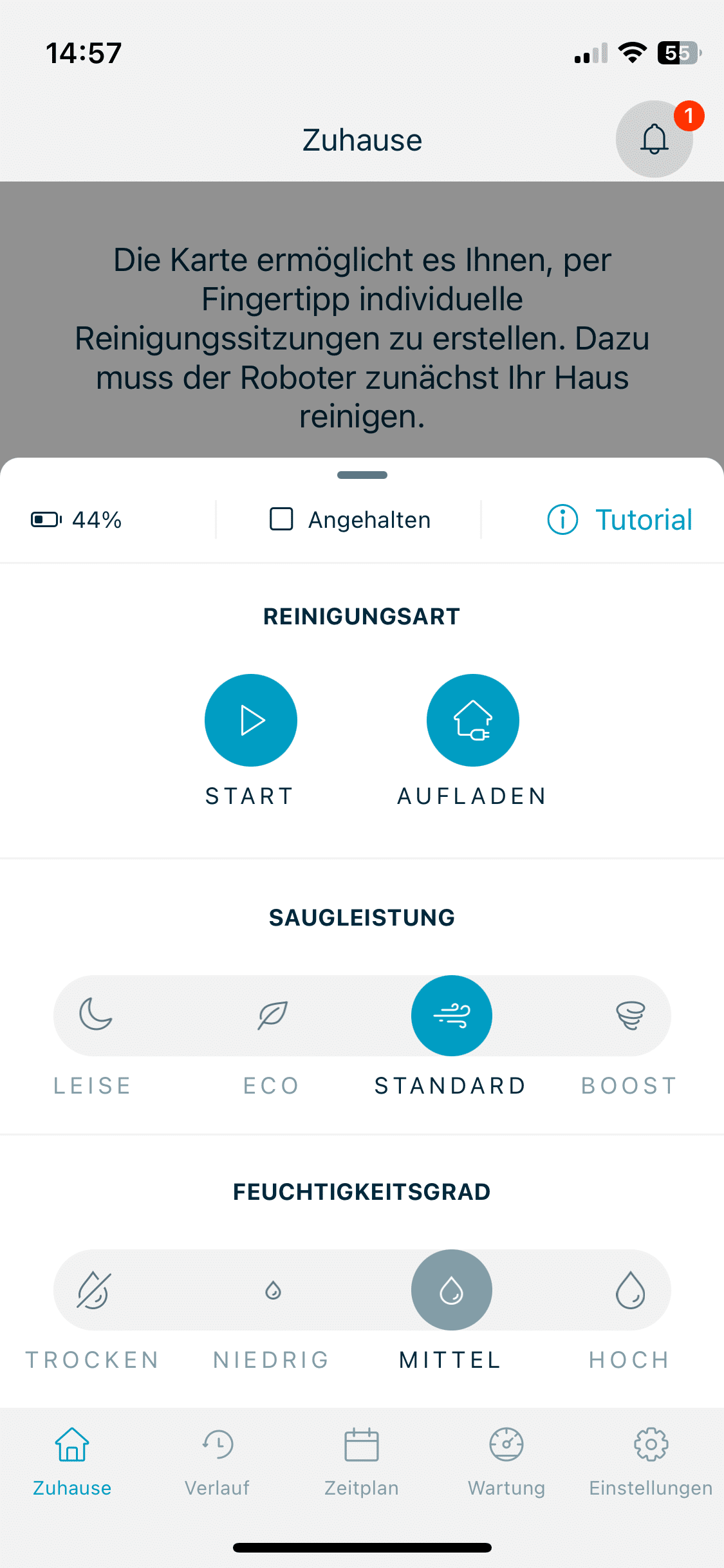 Experten wiederum, die gerne jedes noch so kleine Detail am smarten Haushaltshelfer individuell anpassen möchten, könnten sich womöglich an den vergleichsweise limitieren Einstellungsmöglichkeiten stören. Mich persönlich hat das nicht gestört. So kann man die Karte anpassen, Reinigungspläne erstellen und die Saug- wie Wischkraft den eigenen Wünschen entsprechend regulieren.
