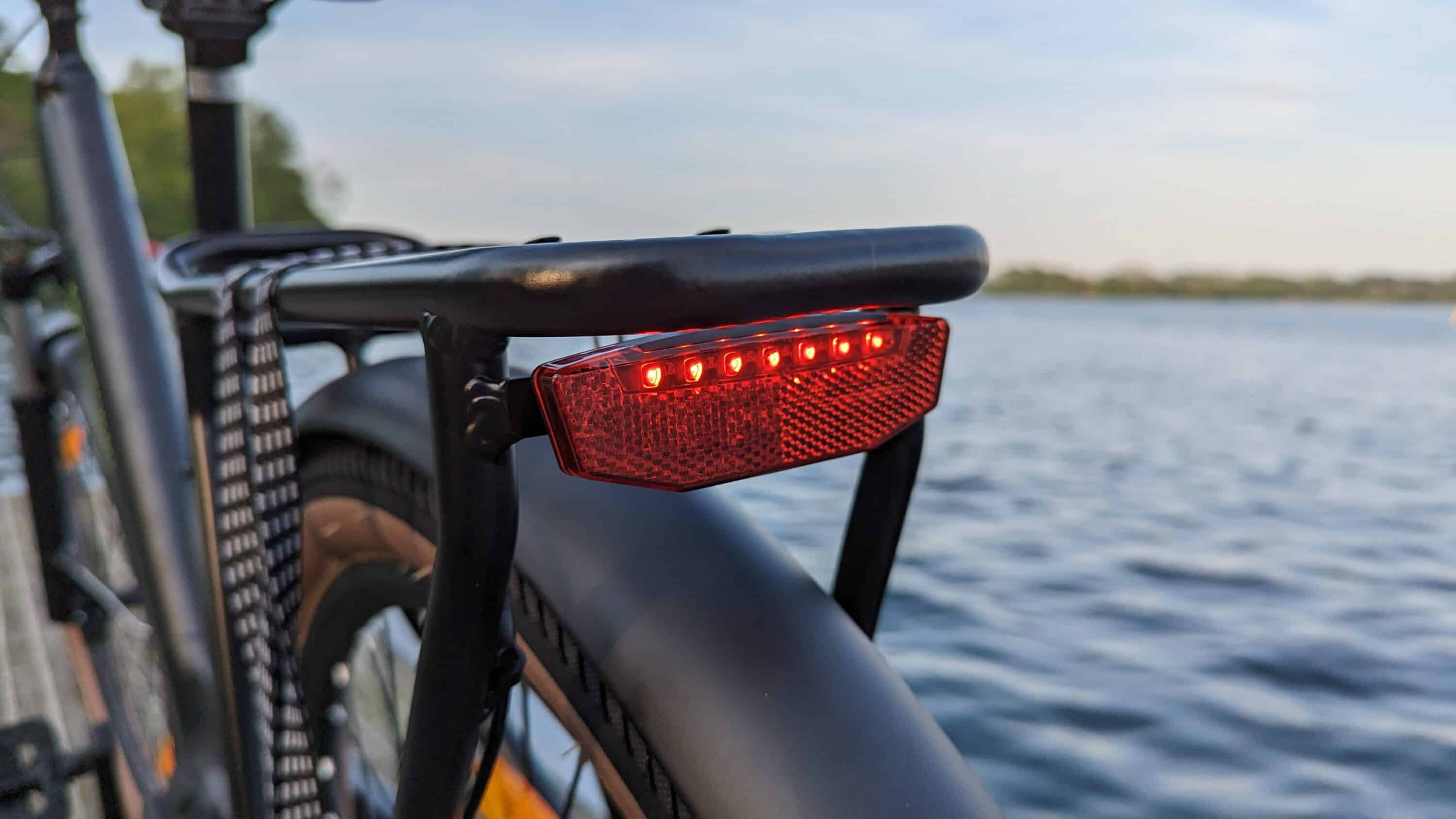 Diese schützt dein E-Bike vor Diebstahl. Sollte sich ein Langfinger einmal an dem Zweirad versuchen, reagiert auf Anhieb eine schallend laute Sirene. Diese haben wir für euch einmal ausprobiert. Das Geräusch war ohrenbetäubend laut und dürfte Diebe schnell vertreiben können. Zusätzlich zur Sirene blinkt das Rücklicht dabei rhythmisch auf. Um die Alarmanlage scharf zu schalten, nutzt du einfach die beiliegende Fernbedienung.