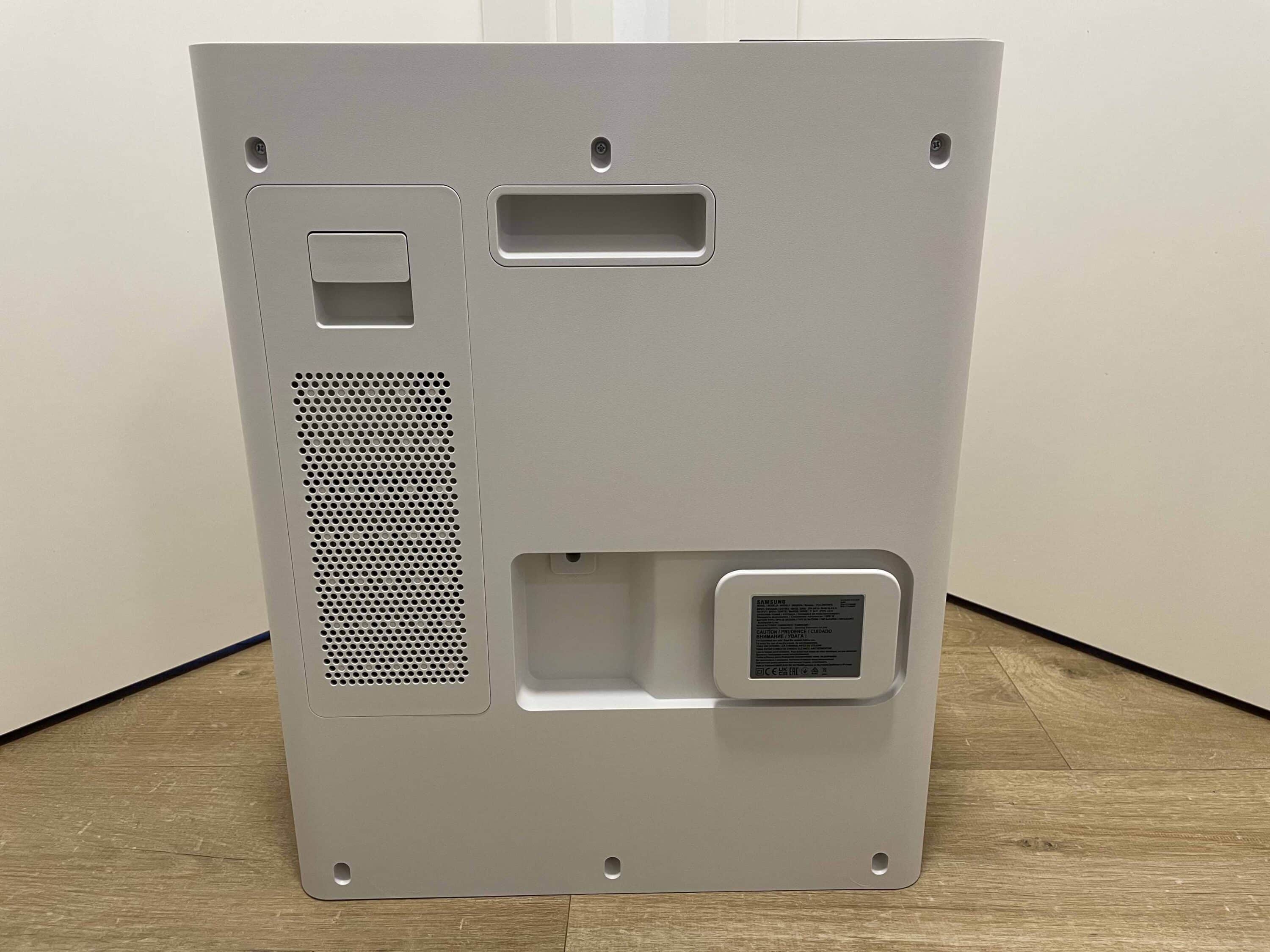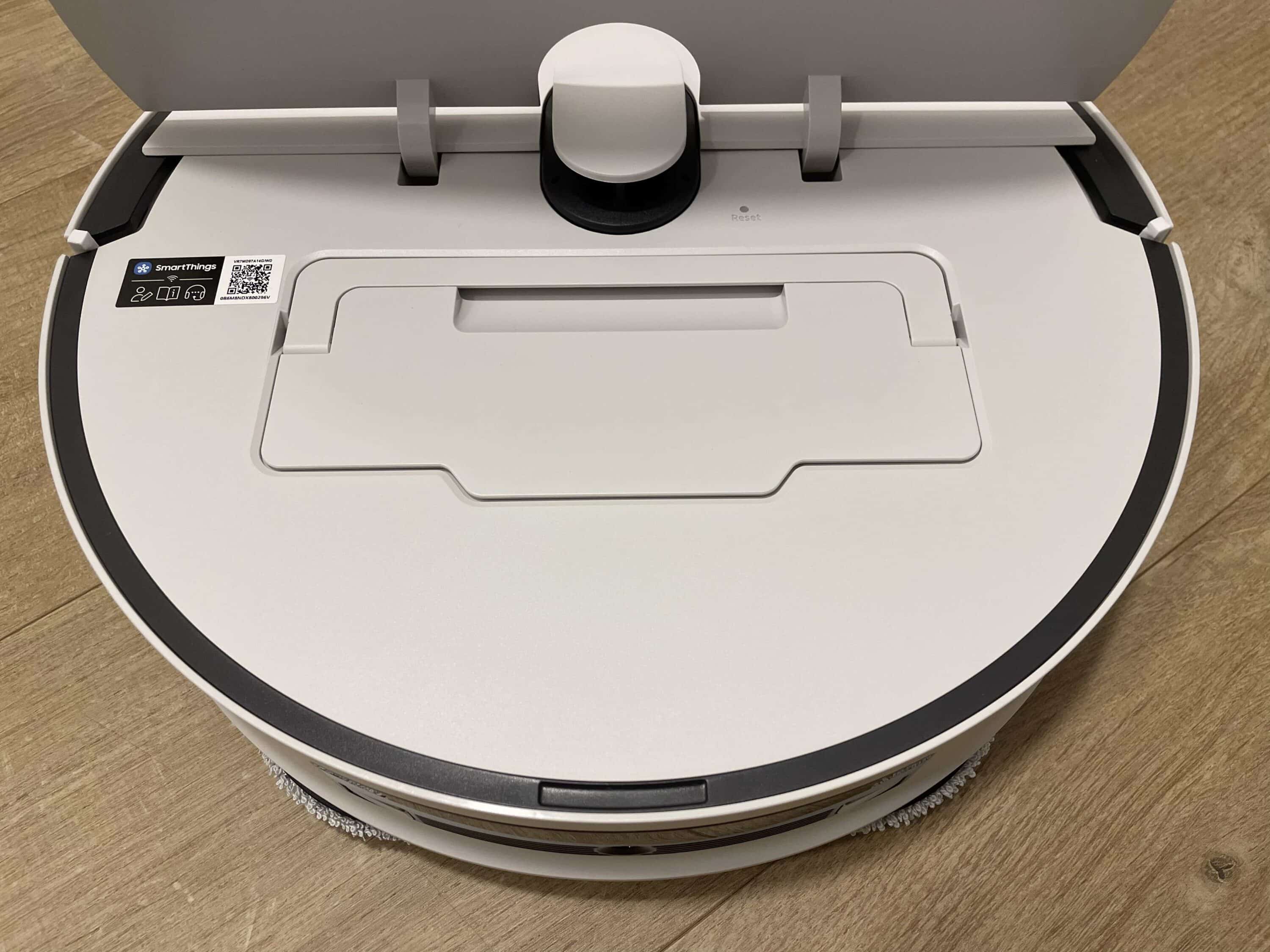 Beim Saugroboter selbst geht Samsung in Sachen Optik klassische Wege. Mit Maßen von 359 x 100 x 364 mm ist der smarte Haushaltshelfer so gut wie kreisförmig. Das soll ihm vor allem bei der Eckenreinigung zugute kommen. Weiterhin thront auf der Oberseite ein kleines Türmchen. Hier sitzt die LiDAR-Einheit für die Navigation.