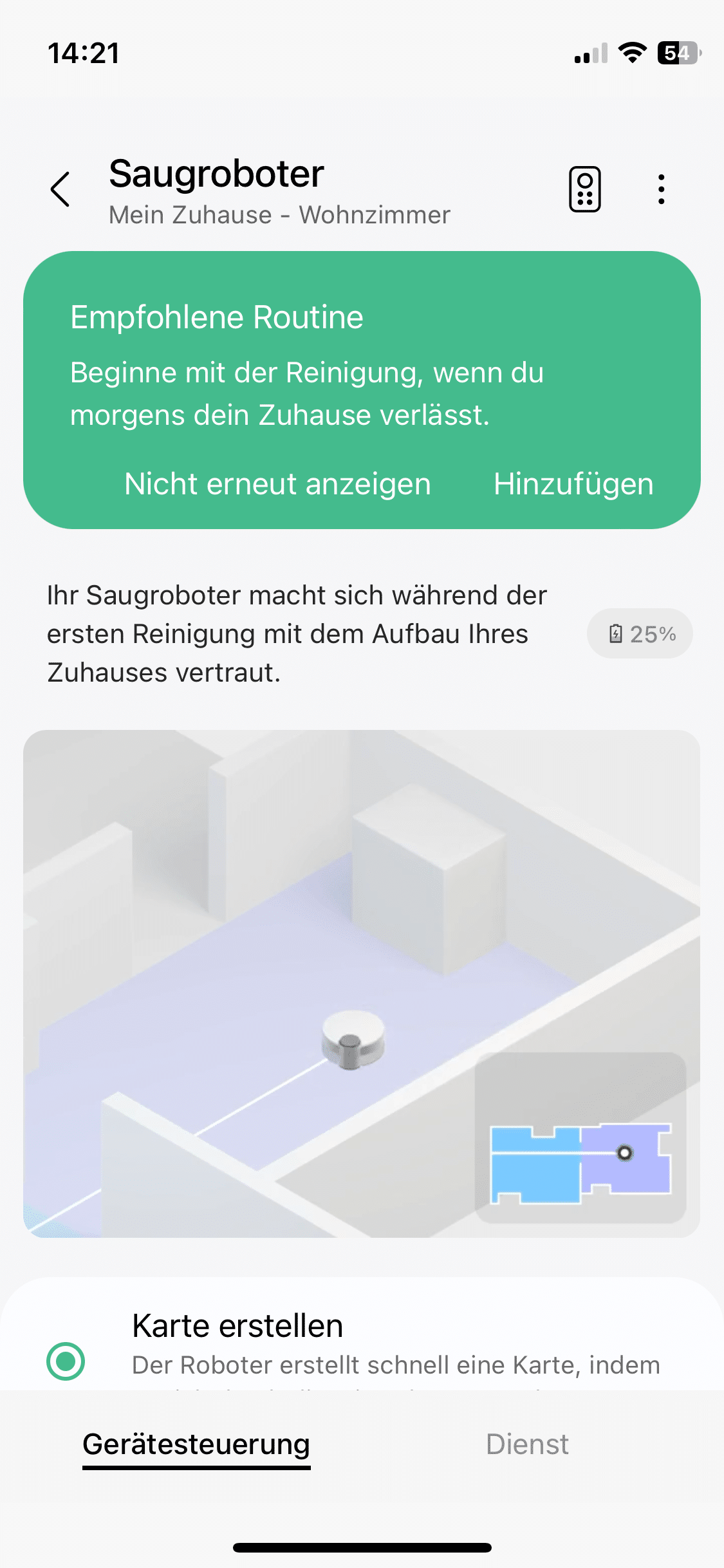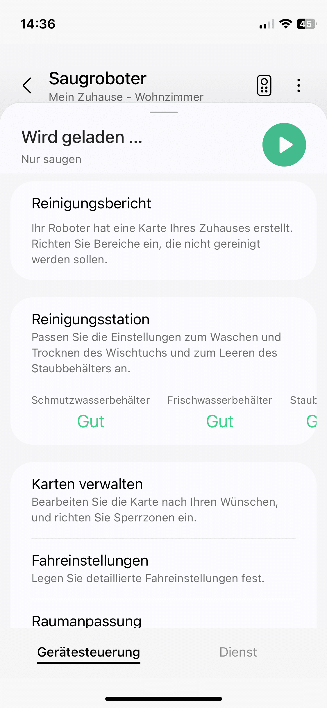 Die Einrichtung selbst geht recht schnell vonstatten. Wurde der Sauger als neues Gerät hinzugefügt, kann man direkt die Jungfernfahrt starten, wo eine Karte deiner Wohnung erstellt wird. In Sachen Einstellungsmöglichkeiten kann sich die Software ebenfalls sehen lassen.
