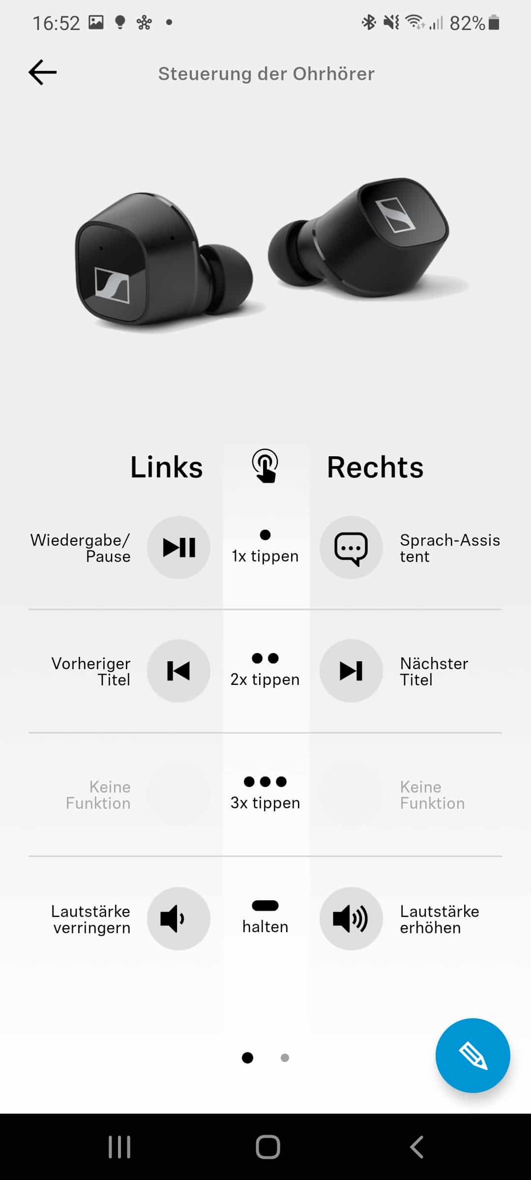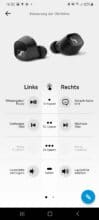Außerdem bietet die App wie erwähnt die Möglichkeit die Funktionen des Touch-Bedienfeldes selbst zu konfigurieren. Dazu lassen sich je für den linken und rechten Ohrhörer zwei Funktionen aus insgesamt acht auswählen.