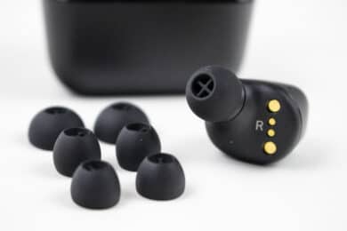 Ausgepackt finden wir die In-Ears in dem dafür vorgesehenen Etui, das gleichzeitig als Ladestation dient. Zusätzlich wird der Lieferumfang durch vier Ohradapter in den Größen XS, S, M und L ergänzt; womit so ziemlich jeder Ohrtyp abgedeckt ist. Außerdem beinhaltet die Verpackung noch das USB-Ladekabel und natürlich die obligatorische Anleitung.