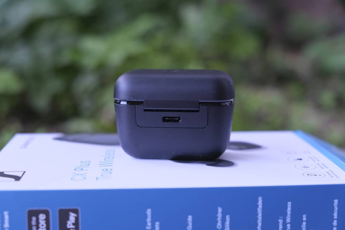 Selbiges gilt für das Ladecase, das sich im Vergleich zu den CX 400BT ebenfalls kaum verändert hat. Weder optisch noch hinsichtlich der Abmessungen. Es kommt auf Abmessungen von 59 x 33,8 x 42,3 mm. Einmal mehr setzt man auf eine matt-schwarze Farbgebung, bei der das Hersteller-Logo auf dem Deckel in silberner Farbe und ein glänzend abgesetzter Steifen an der Öffnung als einzige Akzente ins Auge stechen. Auf der Rückseite findet sich der USB-Type-C-Anschluss, mit dem das Case geladen wird. Auf den dedizierten Pairing-Button verzichtet man bei der Neuauflage hingegen.