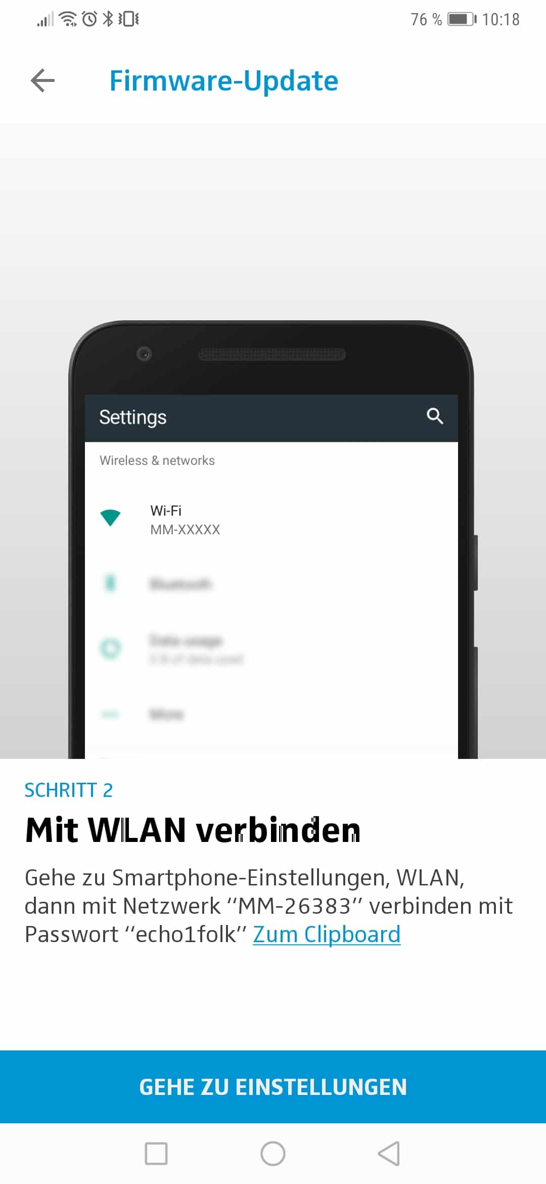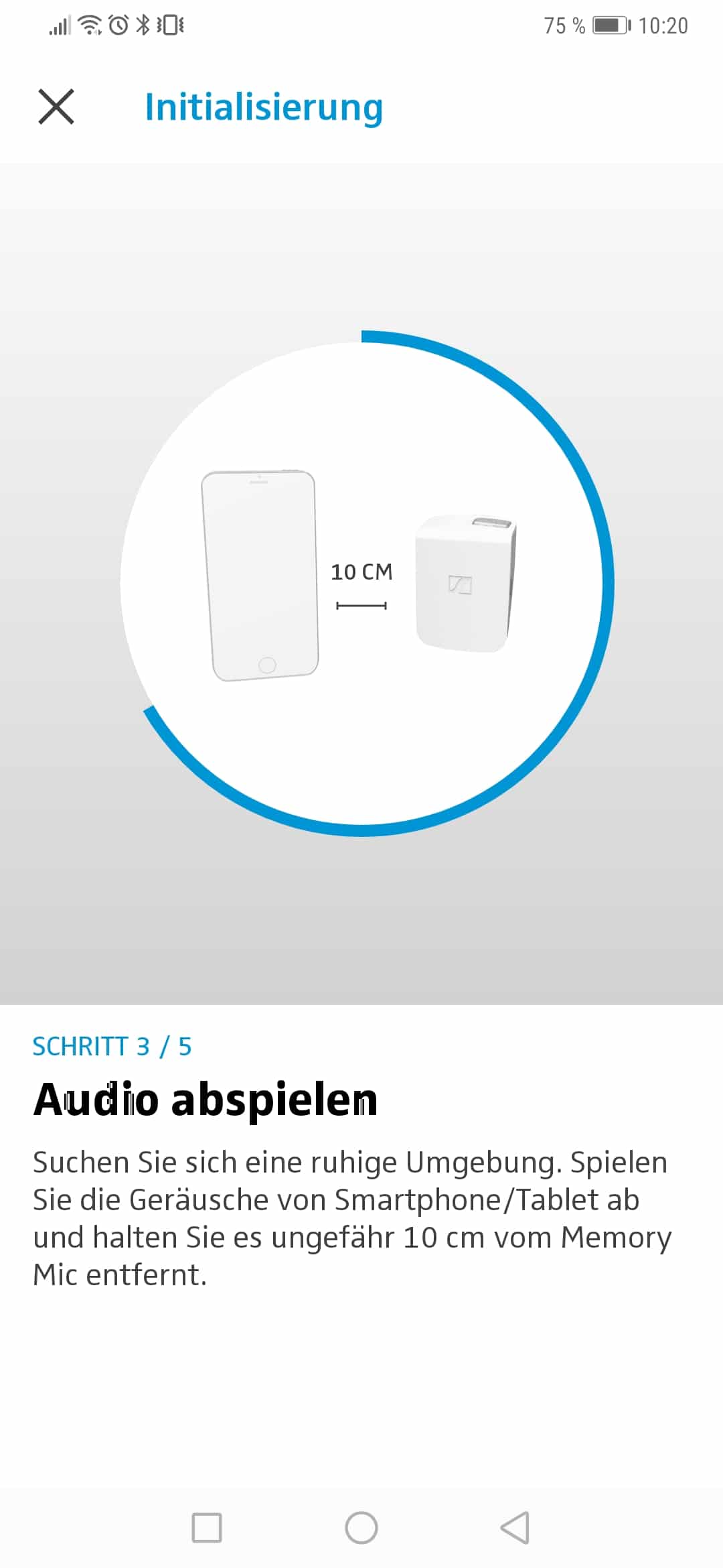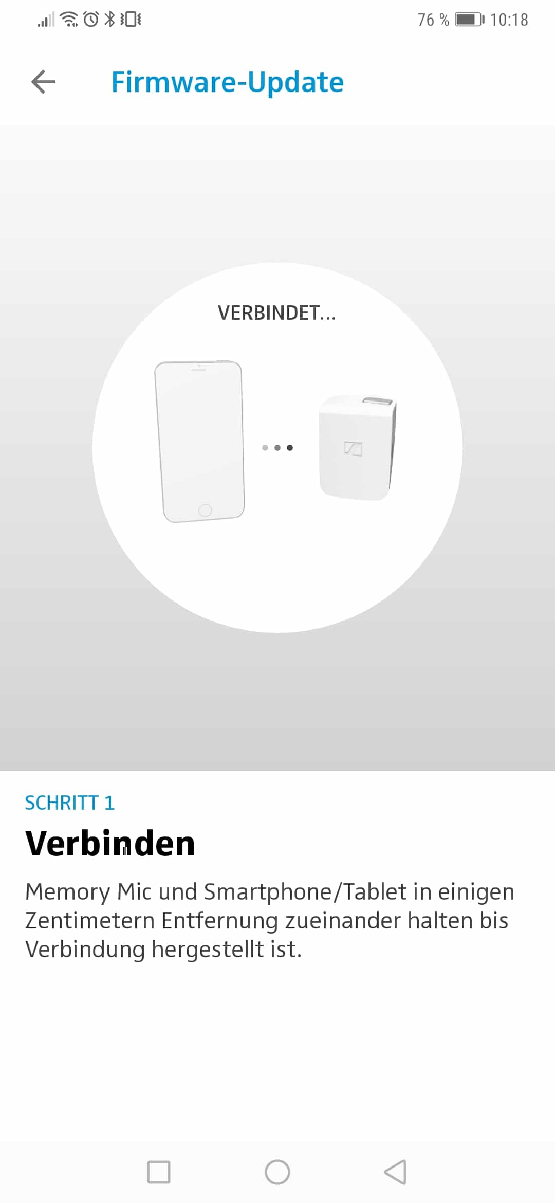 Bevor wir loslegen können, müssen wir eine App des Herstellers installieren. Die App steht sowohl im Google Play Store als auch im App Store von Apple kostenlos zur Verfügung. Sobald sie heruntergeladen ist, kann das Mikrofon eingerichtet werden. Hierfür muss es sich in direkter Nähe zum Smartphone befinden, da eine Bluetooth-Verbindung hergestellt werden muss. Steht die Verbindung, startet der Einrichtungsprozess automatisch. Wir mussten lediglich fünf Punkte durcharbeiten, was innerhalb weniger Minuten erledigt ist. Da einer dieser Punkte in einem Soundtest besteht, sollte die Einrichtung in einer eher ruhigen Umgebung vorgenommen werden. Ist die Einrichtung erfolgreich abgeschlossen, ist das Mikrofon bereit für den Einsatz.