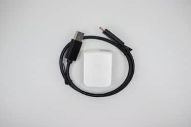 Neben dem kleinen Mikrofon finden sich in der Packung ein USB-C-Ladekabel, eine Bedienungsanleitung und ein Zettel mit Sicherheitshinweisen. Nebeneinander ausgebreitet mutet der Packungsinhalt recht spartanisch an; tatsächlich ist jedoch einfach nicht mehr nötig, um das Gerät zu betreiben. Lediglich ein USB-Poweradapter hätte man noch beilegen können, aber den hat vermutlich sowieso jeder.