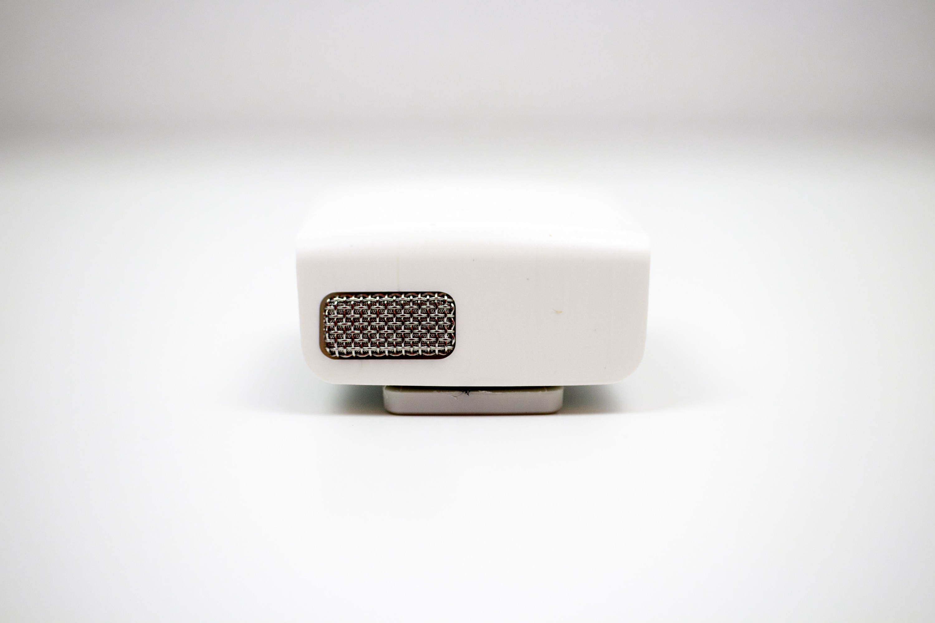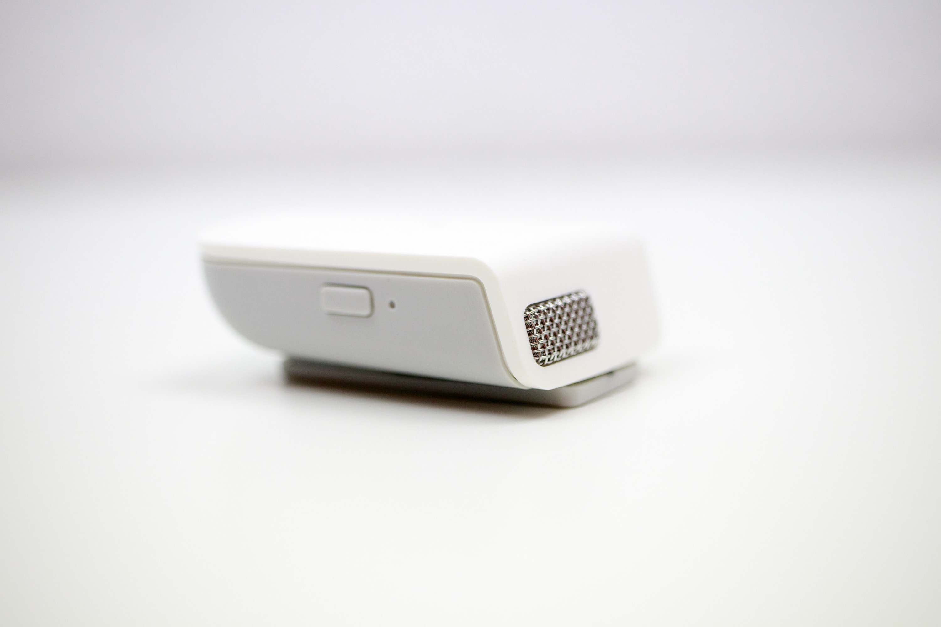 Farblich wagt Sennheiser keine Experimente und setzt auf Weiß. Das Memory Mic kann also als in jeder Hinsicht unauffällig bezeichnet werden. Es ist klein, handlich und kann aufgrund des zurückhaltend-minimalistischen Designs beinahe übersehen werden. Dennoch hätten wir uns gewünscht, dass es einen Anschluss für ein externes Mikrofon gibt, um ein noch unauffälligeres Laveliermikrofon anschließen zu können.