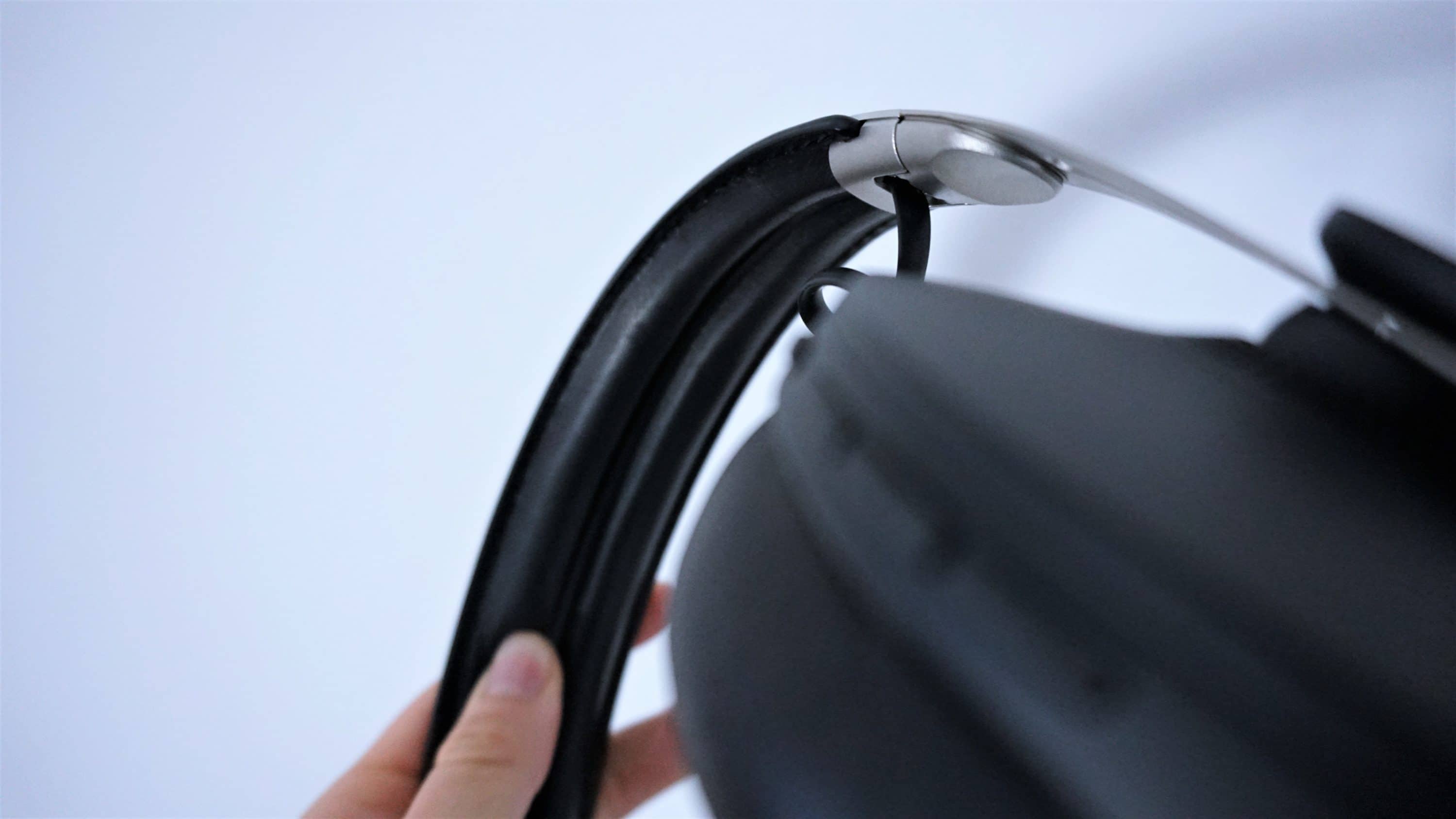 Zunächst werfen wir mal einen Blick auf das Äußere. Die Sennheiser Momentum Wireless 3 halten dabei weitestgehend am alten Design fest, nichtsdestotrotz heben sie sich weiterhin von der Masse ab. Das markanteste Element ist dabei wohl der Verstellmechanismus aus perlgestrahltem Edelstahl, der den Kopfhörern sein einzigartiges Aussehen verleiht. Es war leider auch das Detail, welches mich persönlich am meisten gestört hat, aber dazu gleich mehr. Die hervorstehenden Kabel oberhalb der Ohrpolster wurden vom Vorgänger übernommen.
