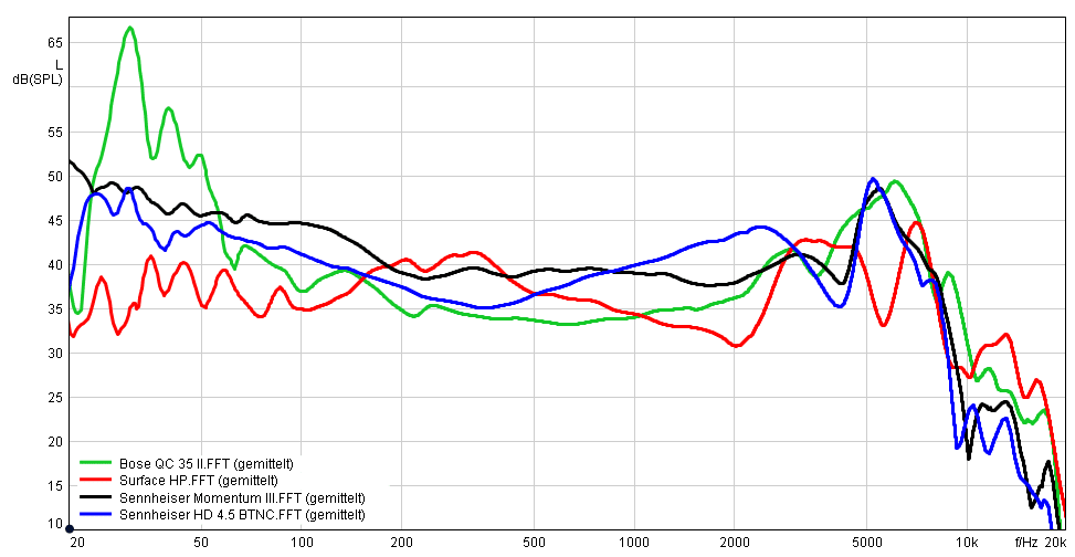 Weder Sony noch Bose kommen an den Sound der neuen Sennheiser-Kopfhörer ran. Die verbauten 42-Millimeter-Wandler liefern starke, aber differenzierte Bässe, einen ausgewogenen Mitteltonbereich und kristallklare Höhen. Das alles präsentiert der neue Sennheiser Momentum auf der vielleicht breitesten Klangbühne, die in dieser Preisklasse zu finden ist. Im Folgenden wird der Frequenzgang der Sennheiser Kopfhörer dargestellt. Zu sehen ist ein gleichmäßiger Verlauf nahe an einer idealen Charakteristik. Die tiefen Frequenzen fallen sanft zum Mitteltonbereich ab,welcher anschließend flach und ohne Fluktuationen weiter verläuft. Der Peak bei circa 5 kHz ist zu vernachlässigen, da es sich hierbei um eine Gegebenheit des Messvorgangs handelt (vergleiche Bild rechts). Lediglich die Höhen fallen etwas stark ab, was aber im Blindtest den wenigsten Höhrern auffallen würde.