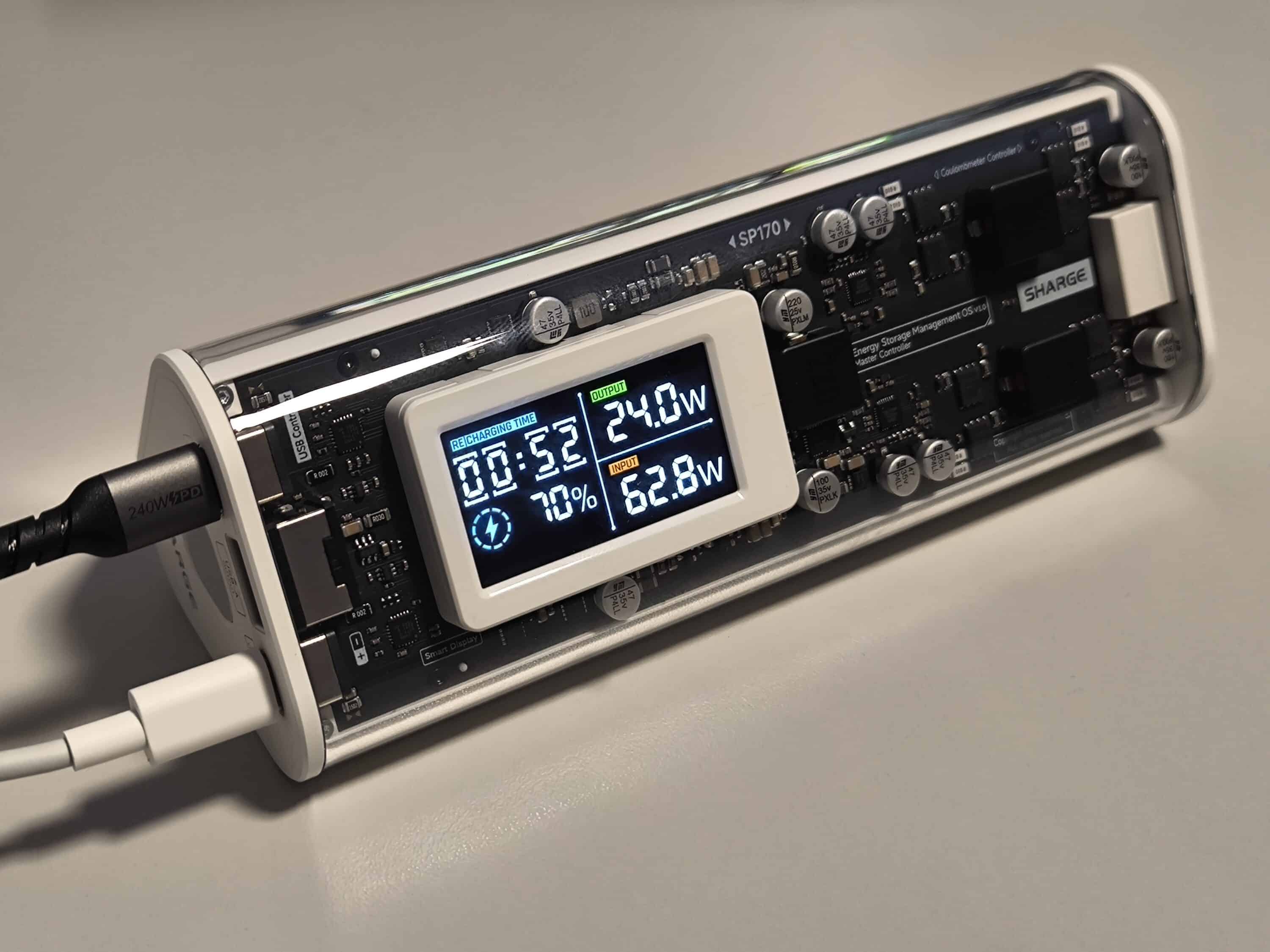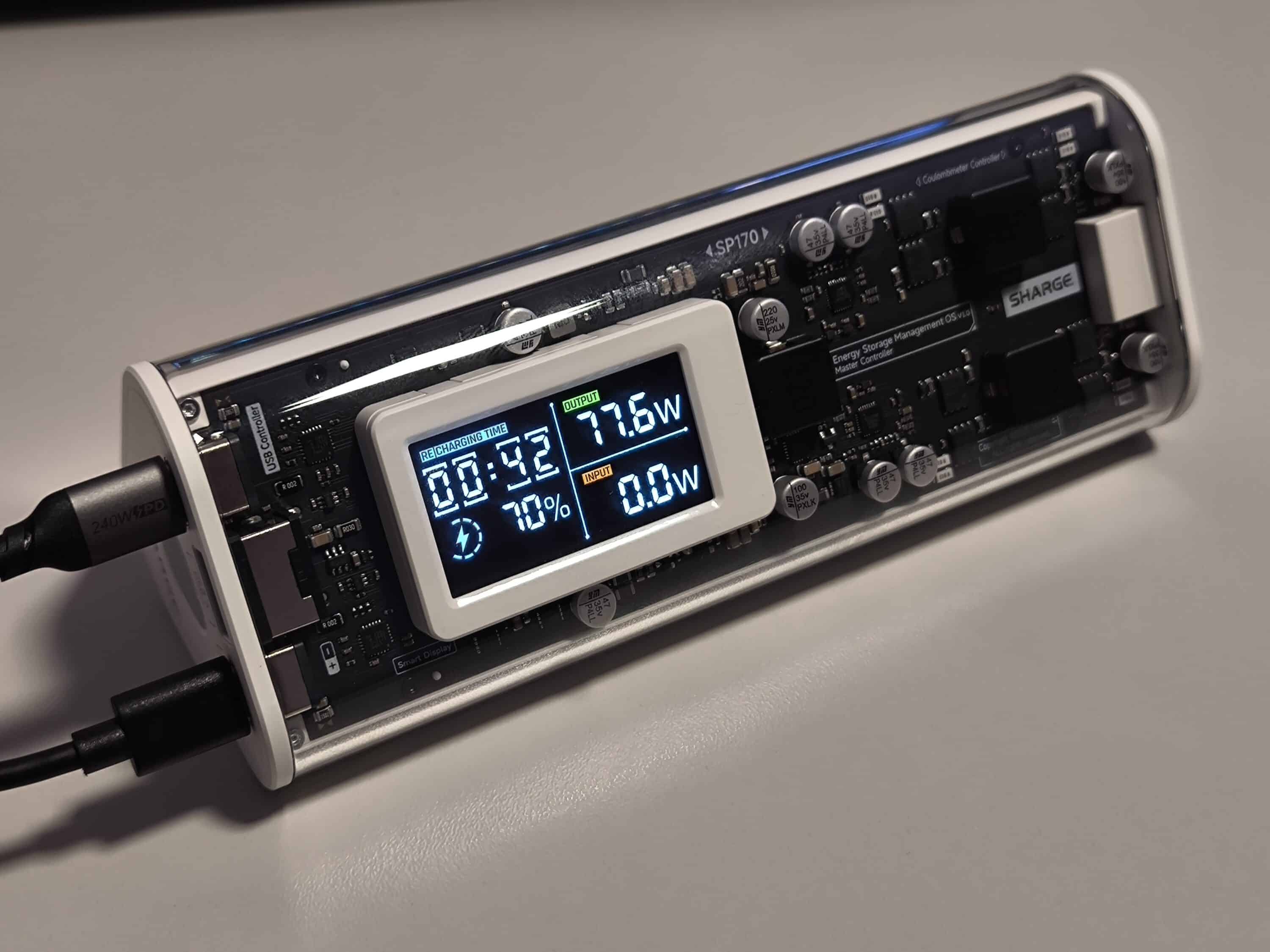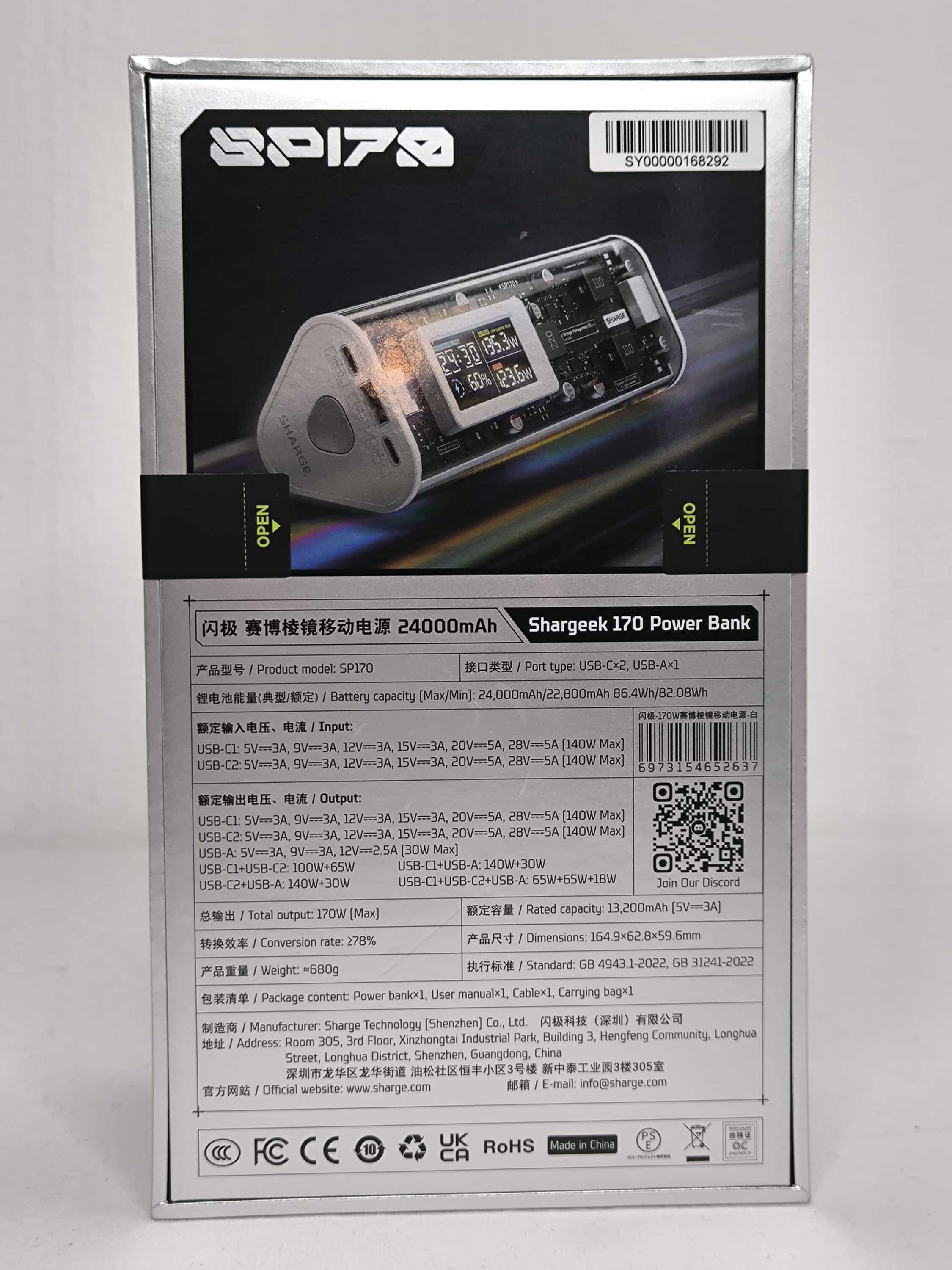 Die Shargeek 170 von SHARGE besticht, wie vom Hersteller gewohnt, durch ihr außergewöhnliches Design. Dabei handelt es sich um eine Powerbank mit einer Kapazität von 24.000 mAh, die auch Einblicke in das Innenleben gewährt. Dadurch lässt sich die Platine von vorne und die Batteriezellen von der Rückseite aus betrachten. Ein cleveres Display gibt zudem einen Überblick über den aktuellen Ladevorgang. Ungewöhnlich für Powerbanks, aber allemal von Vorteil ist außerdem die Wasserdichtigkeit nach IP66. Die Mitnahme der Powerbank in feuchte Regionen sollte demnach also kein Problem darstellen.