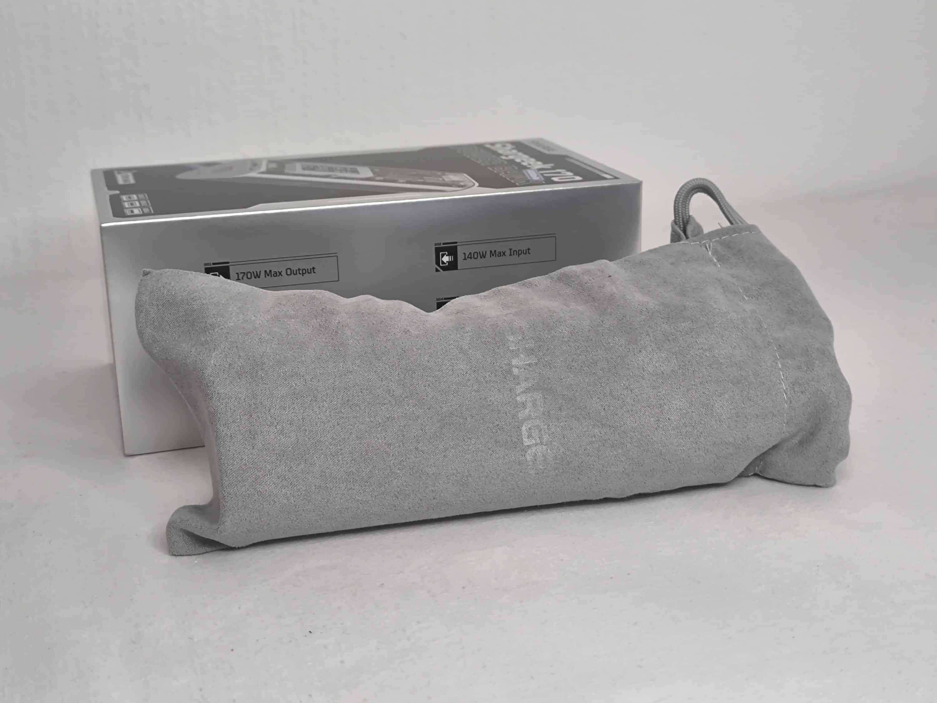 Wie bei Powerbanks üblich, beschränkt sich der Lieferumfang der Shargeek 170 auf das Wesentliche. So werden neben der Shargeek 170 selbst ein USB-C-Kabel sowie eine kleine Bedienungsanleitung mitgeliefert. Die beiligende Stofftasche macht die Powerbank überdies reisetauglich und schützt vor Kratzern beim Transport.