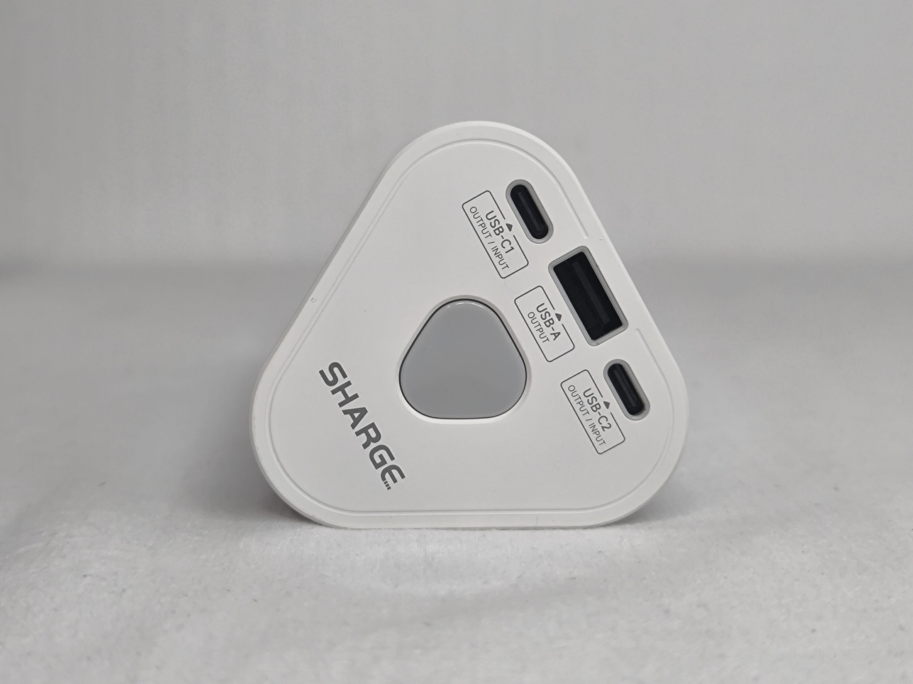 Seitlich des Displays, also links, befinden sich die Anschlüsse der 680 Gramm schweren Powerbank. Hier erwarten uns zwei USB-C Ports sowie dazwischen ein USB-A Anschluss. Die Spitzenleistung eines USB-C-Ports liegt bei satten 140 Watt, während am USB-A-Port maximal 30 Watt anliegen. Verwendet man beide USB-C-Ports gleichzeitig, minimiert sich die Leistung auf jeweils 100 und 65 Watt. Werden alle Ports zeitgleich zum Schnellladen genutzt, ergibt sich eine Ausgangsleistung von jeweils 65 Watt am USB-C- und 18 Watt am USB-A-Port. Summiert beträgt die Gesamtleistung der Shargeek 170 bei Nutzung aller Anschlüsse also effektiv 148 Watt. Aus unserer Sicht ein immer noch sehr beeindruckender Wert!