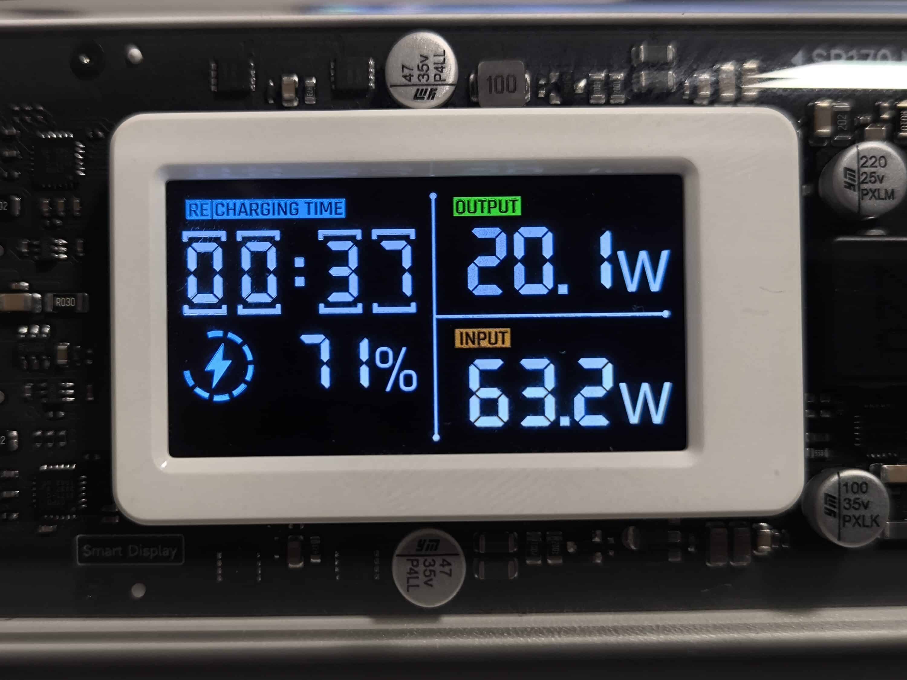 Im Praxistest zeigt sich, dass die Powerbank mit einer Kapazität von 24.000 mAh unser Xiaomi 13T Pro problemlos mehrfach aufladen kann. Darüber hinaus haben wir aber auch diverse andere Geräte getestet, unter anderem gleich mehrere Notebooks (Lenovo Yoga Slim 7 Pro X sowie ein Dell XPS 13), ein IPhone 15 Pro, mehrere BT-Kopfhörer sowie eine Amazfit Smartwatch. Auffällig ist natürlich die unterschiedliche Ladegeschwindigkeit, welche oben rechts im Display unter dem Punkt „Output“ ersichtlich ist.