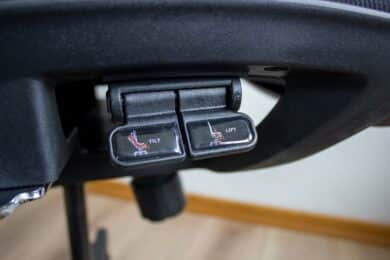 Die Rückenlehne lässt sich über einen drahtgebundenen Mechanismus frei im Winkel einstellen. Außerdem ist sie in fünf Stufen höhenverstellbar. Auch die Wippfunktion wird an selbiger Stelle eingestellt. Für noch bessere Anpassbarkeit an die eigenen Bedürfnisse verfügt der Sharkoon OfficePal C30 über 3D-Armlehnen. Sie lassen sich in der Höhe, sowie nach vorne oder hinten einstellen. Außerdem können sie in der Breite verändert werden.