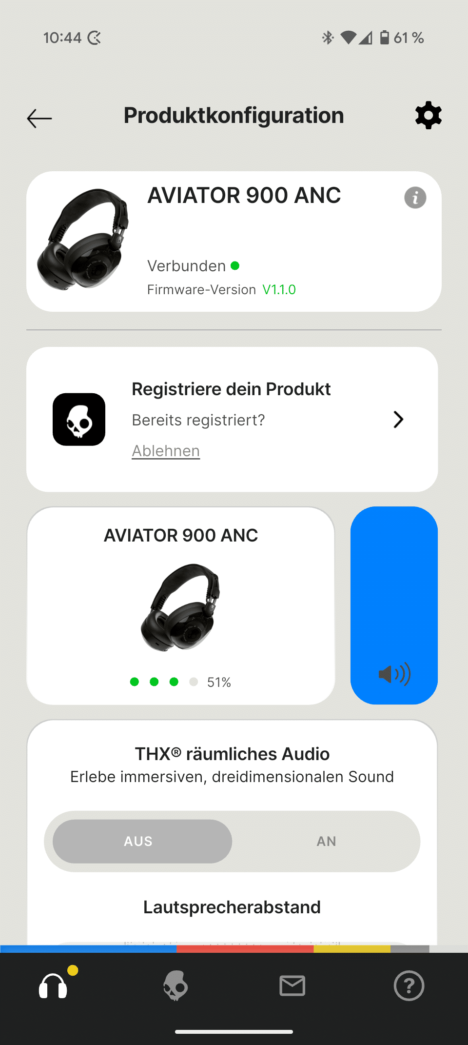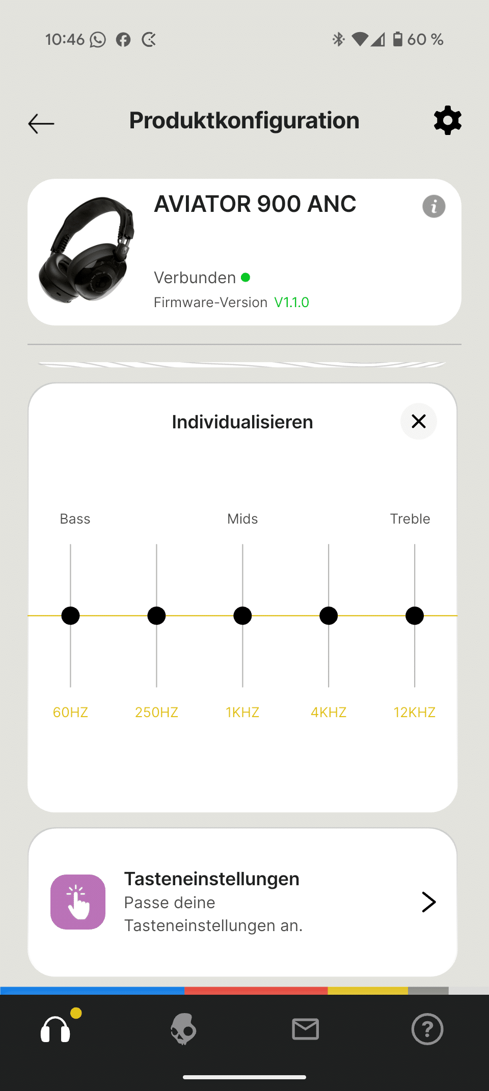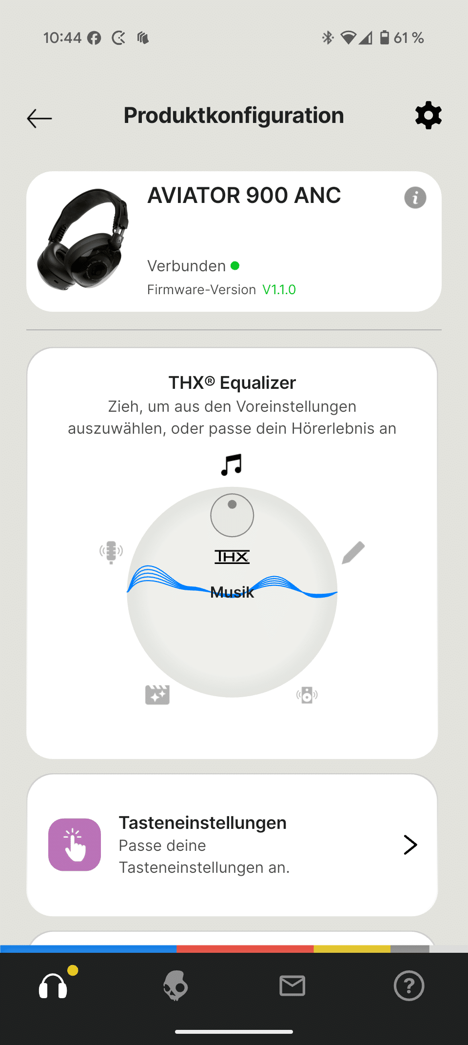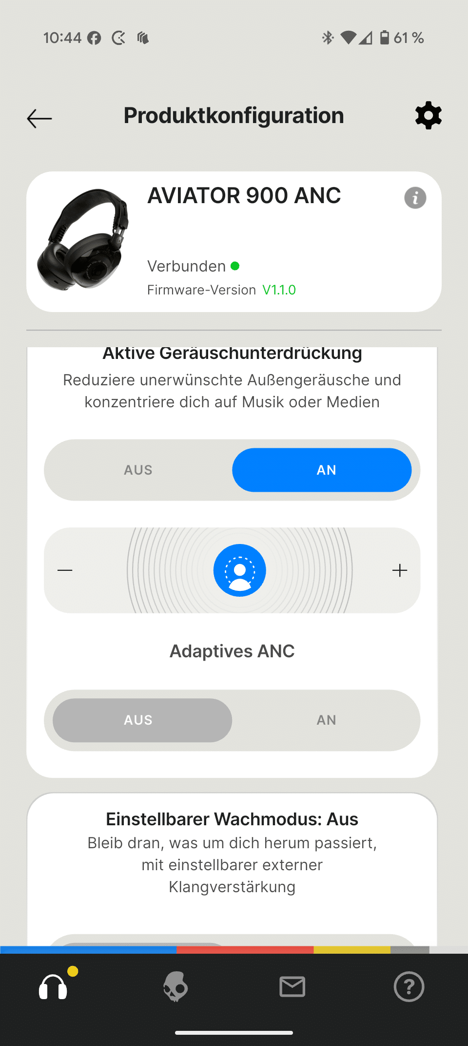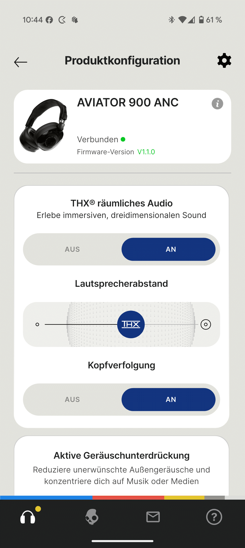 Die Skullcandy-App für iOS und Android erlaubt dann eine tiefgreifende Anpassung der Skullcandy Aviator 900 ANC. Was ich ganz angenehm finde ist, dass sich sämtliche Einstellungen in einem einzigen Reiter befinden – so musst du dich nicht durch ellenlange, verschachtelte Menüs hangeln (nimm das, Sony).