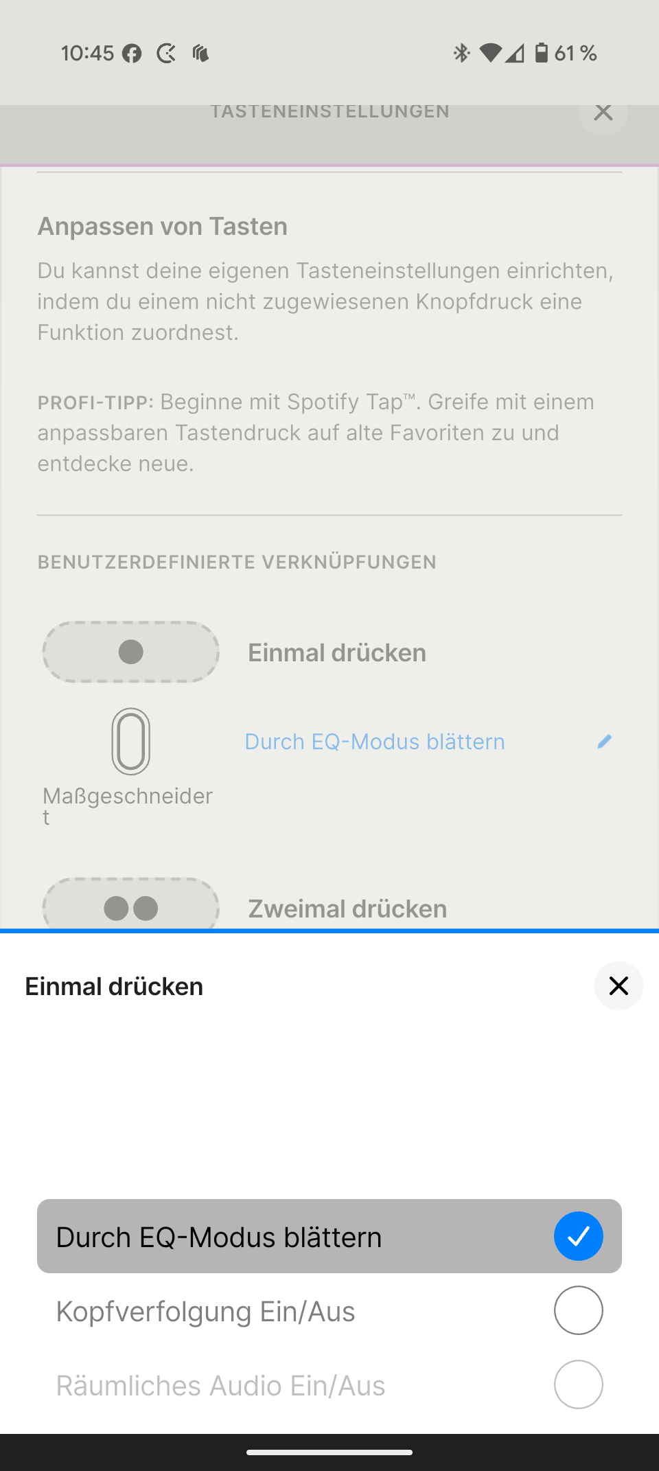 Zudem wählst du zwischen vier Equalizer-Presets (Musik, Film, Podcast oder Bass-Boost) und passt den Klang mit einem simplen Custom EQ in fünf Frequenzen an. Innerhalb der App lassen sich auch die Funktionen der Custom-Taste anpassen, während du auf Wunsch auch einen Audiomodus mit niedriger Latenz auswählst. Das ist besonders für Mobile-Games interessant, kratzt aber mächtig an der Akkulaufzeit.