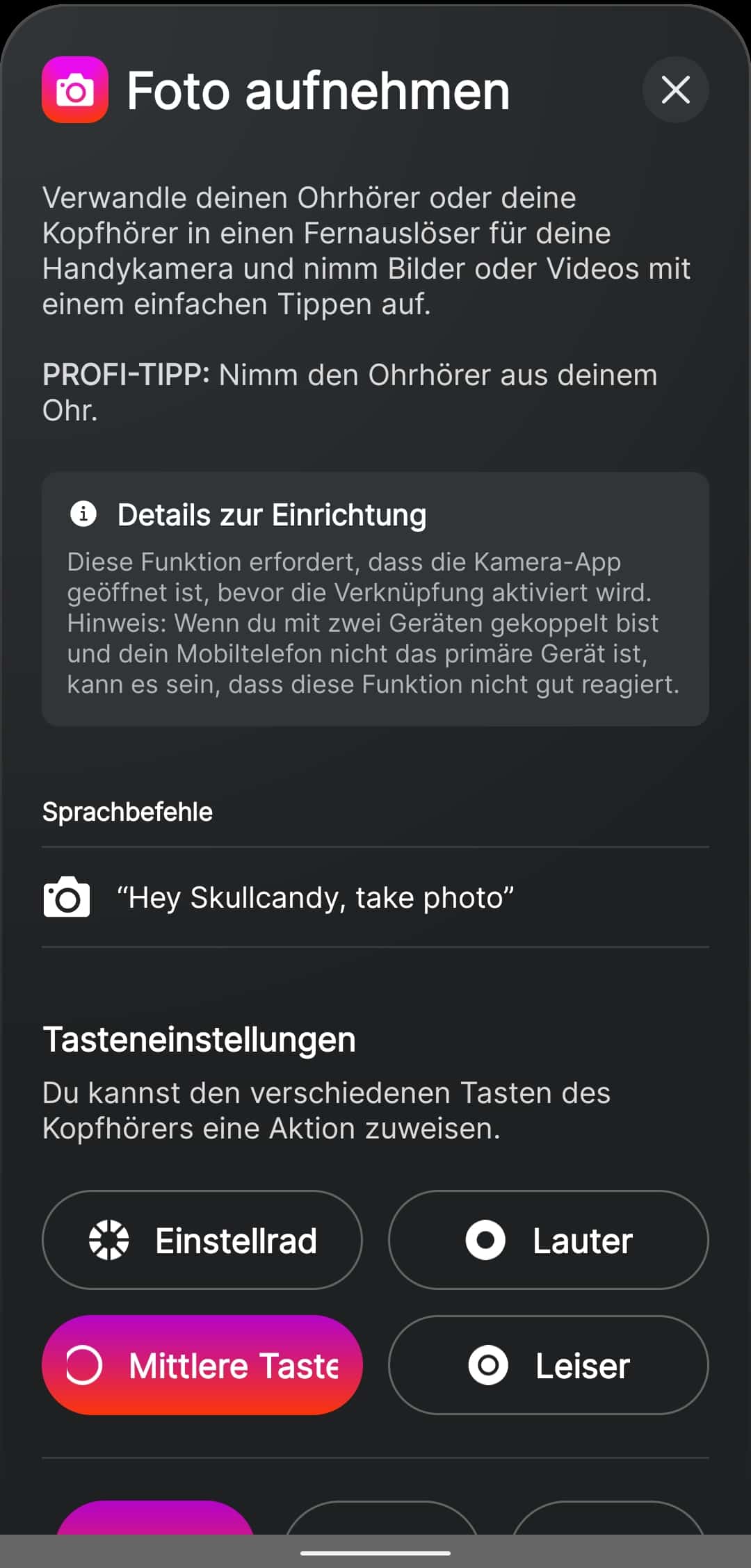 Durch die vielen Bedienelemente braucht man eine kurze Eingewöhnungszeit, um mit Skullcandys Neuling gut umgehen zu können. Sobald man es einmal verinnerlicht hat, geht das aber schnell von der Hand. Gefallen hat uns zudem der Druckpunkt aller Bedienelemente bis auf den Schiebetaster: Dieser wirkt nicht ganz so knackig – dramatisch ist das aber nicht. Insgesamt ist das Bedienkonzept damit durchaus gelungen.