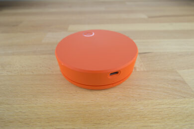 Das Ziel, vergessliche Menschen daran zu erinnern, ihre Internetbox mitzunehmen, kann also getrost als erreicht bezeichnet werden. Darüber hinaus lässt sich nicht allzu viel über Design und Verarbeitung der Box sagen. Der Solis ist klein und praktisch. Seine knallige Farbe fällt an jedem Ort auf. Ansonsten ist er sehr schlicht gehalten. Lediglich zwei Knöpfe, deren Funktion im weiteren Verlauf unseres Tests näher beleuchtet werden sollen, lassen sich finden.