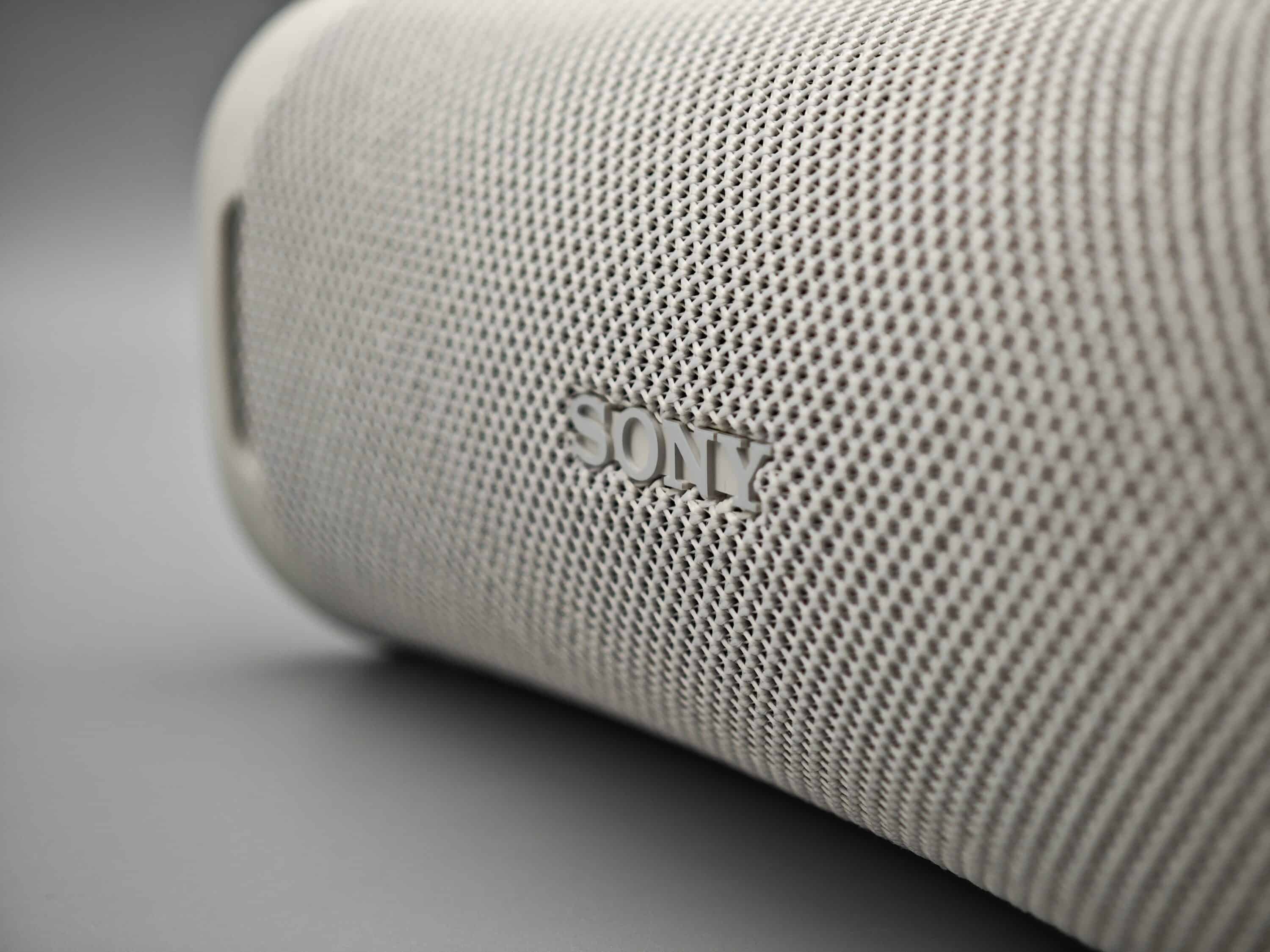 Der Korpus ist dabei mit einem hochwertigen Stoff überzeugen, was dem Lautsprecher einen hochwertigen Look verleiht. An der Vorderseite prangt mittig das Sony-Logo, während die Bedienelemente an der Oberseite zu finden sind.
