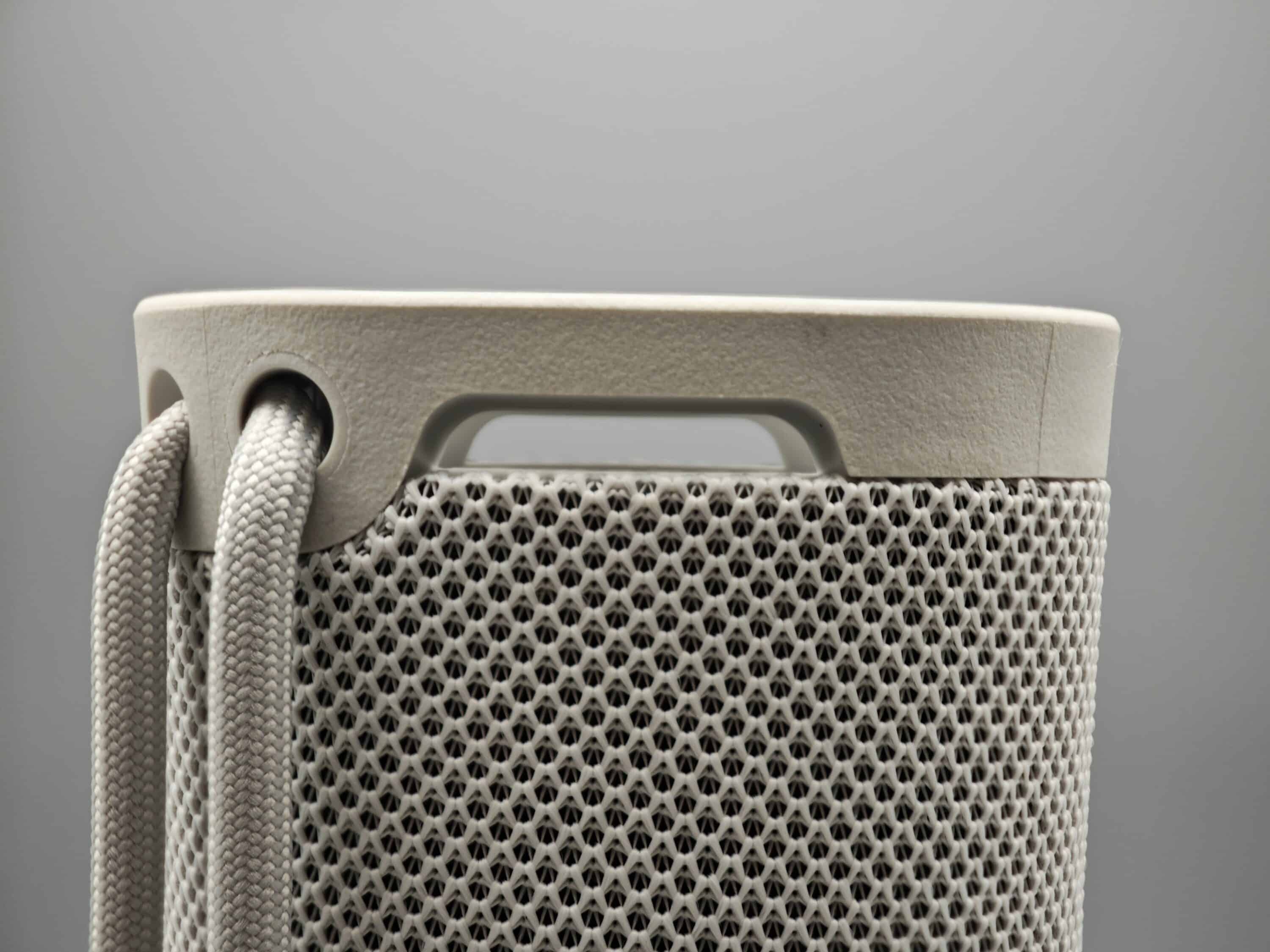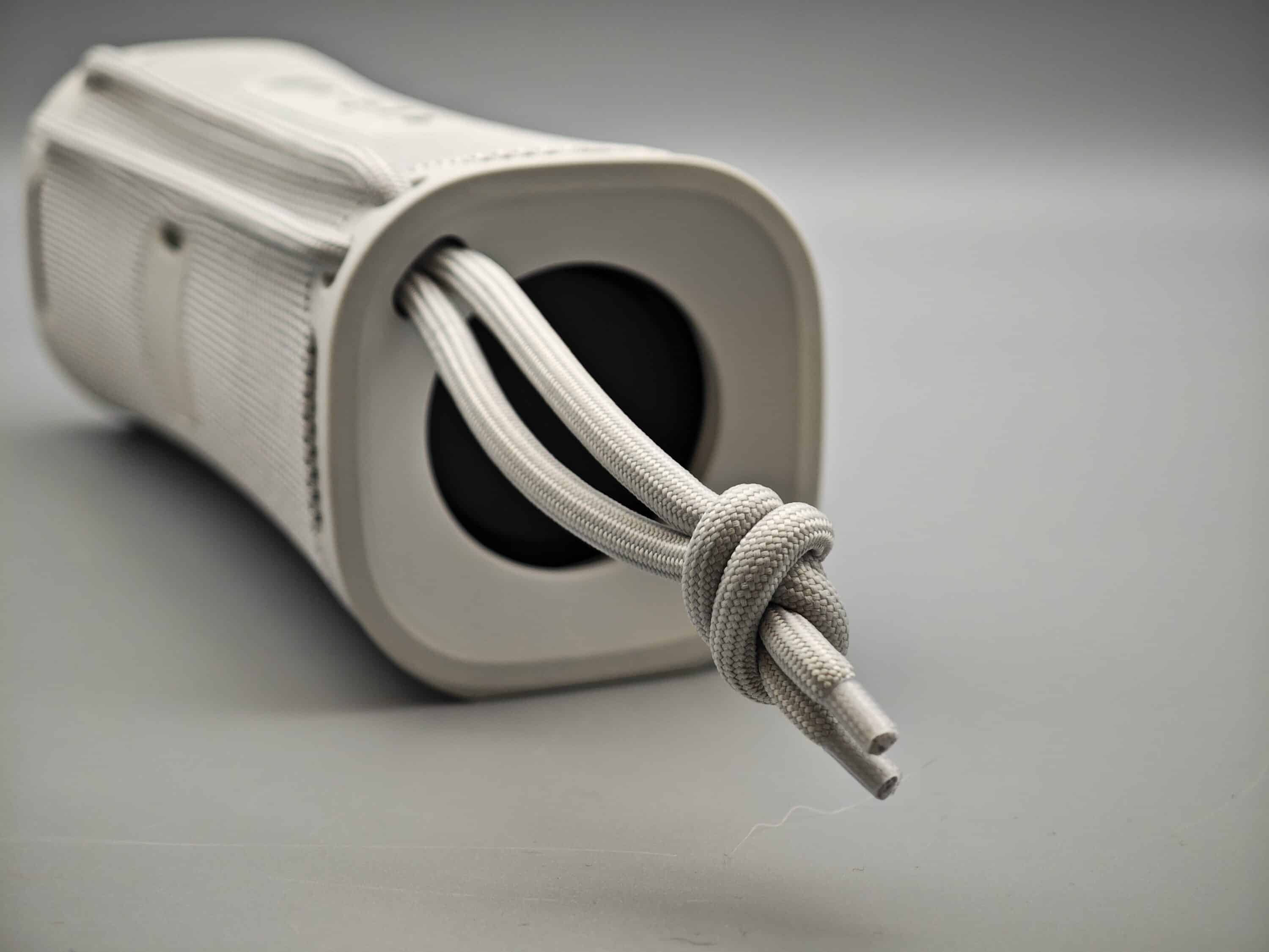 An der Rückseite des gemäß IP67 gegen Wasser geschützten Lautsprechers findet sich, verborgen unter einer abgedichteten Klappe, der USB-C-Anschluss zum Aufladen. Einen Tragegriff spendiert Sony dem ULT Field 1 nicht, dafür gibt’s einen doppelten Kordelzug, der genau diese Funktion erfüllt – auf Wunsch aber auch einfach herausgenommen werden kann.